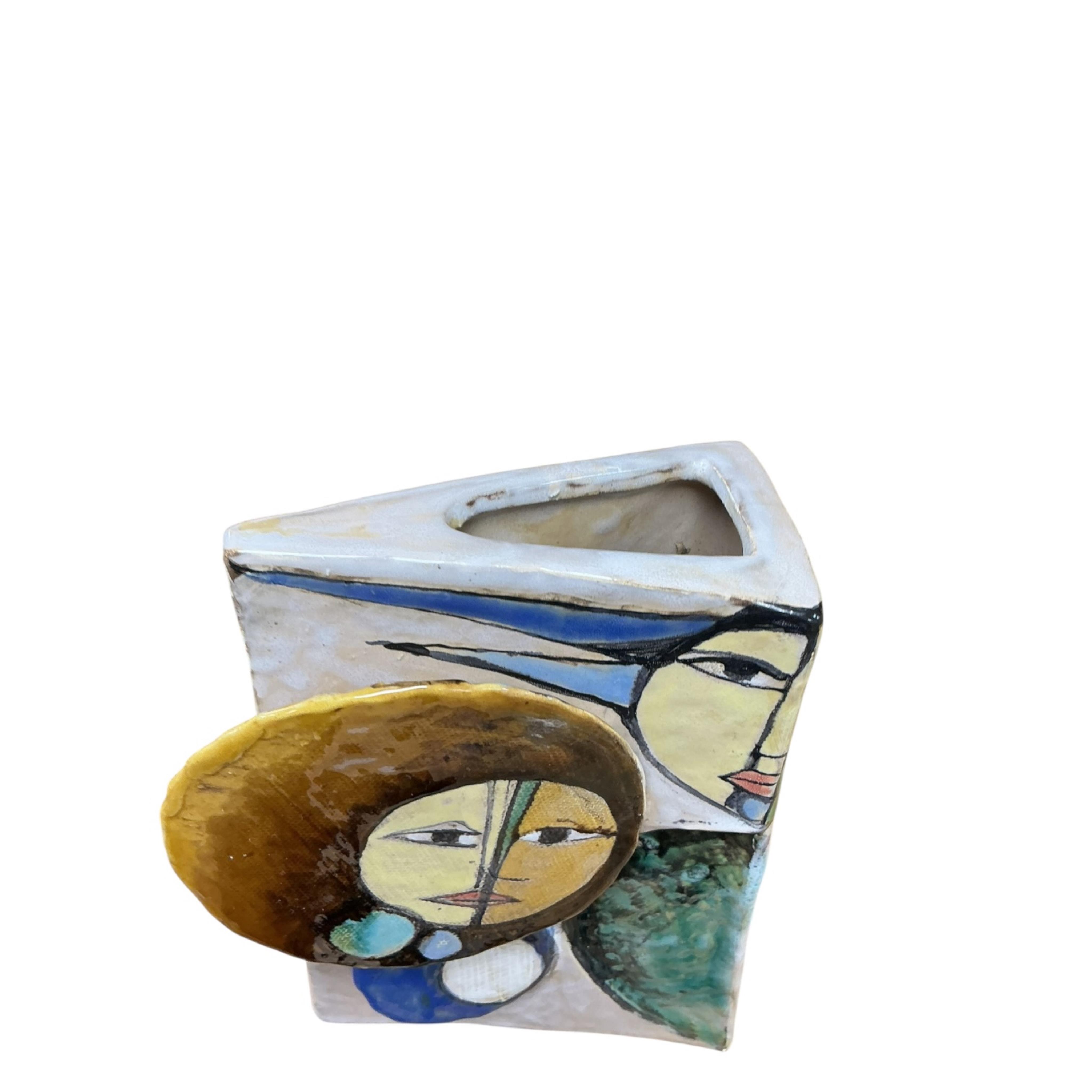 Elio Schiavon (1925 / 2004) an art pottery figural vase with applied discs, height 20cm.
