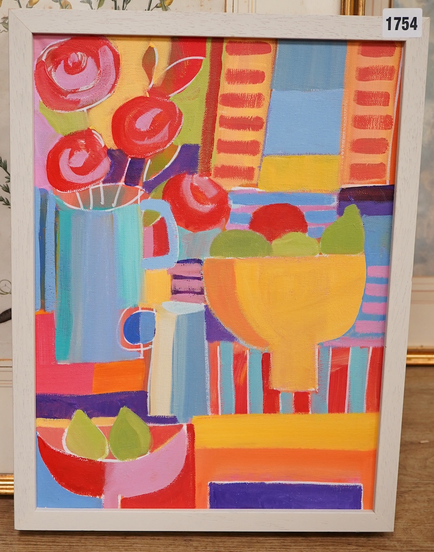 Jan Rippingham (contemporary), ‘Still Life with Fruit’, unsigned, acrylic on canvas, 39 x 29cm