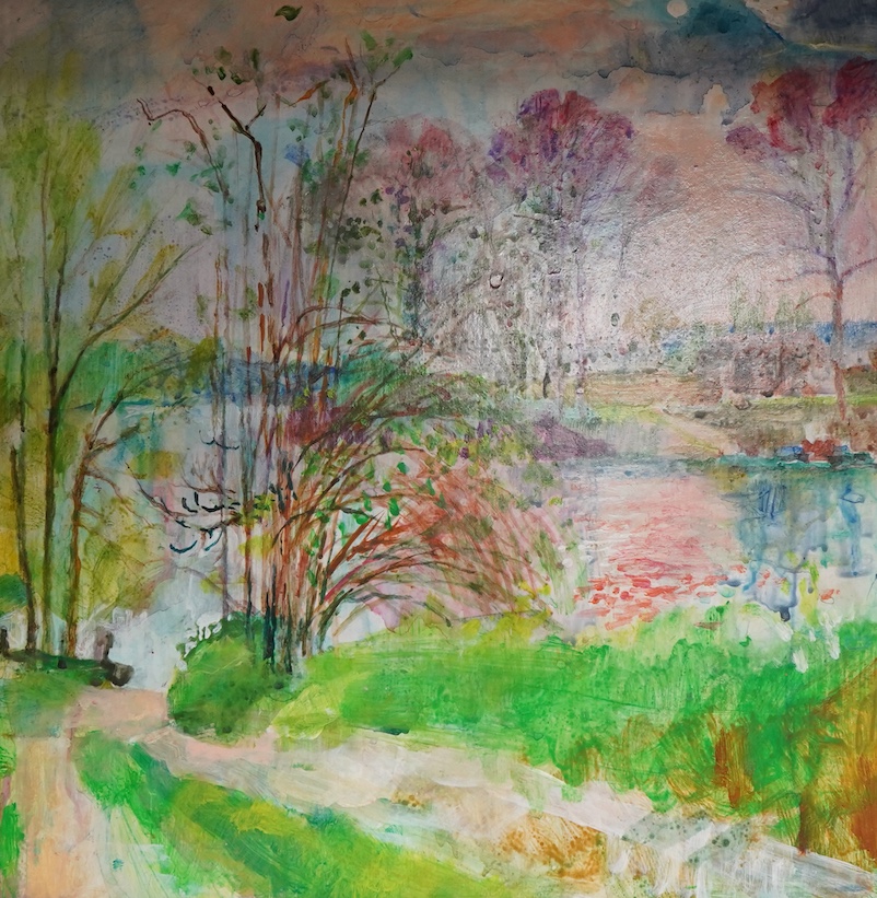 Lot 1735 , Contemporary school, woodland and riverscape, two oils, unsigned, one on canvas, 29 x 29cm
