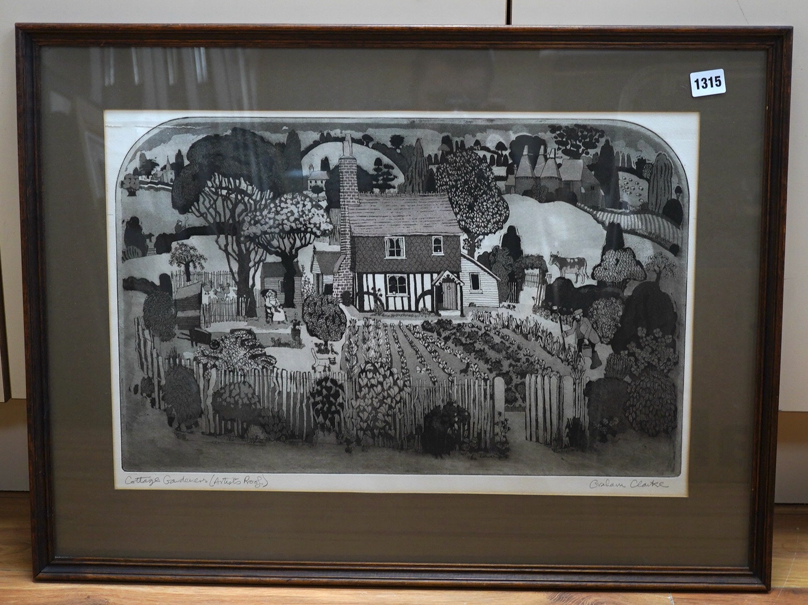 Lot 3315 , Graham Clarke (b.1941) ‘Cottage Gardeners’, signed in pencil to the margin, artist proof etching with aquatint, 36 x 56cm