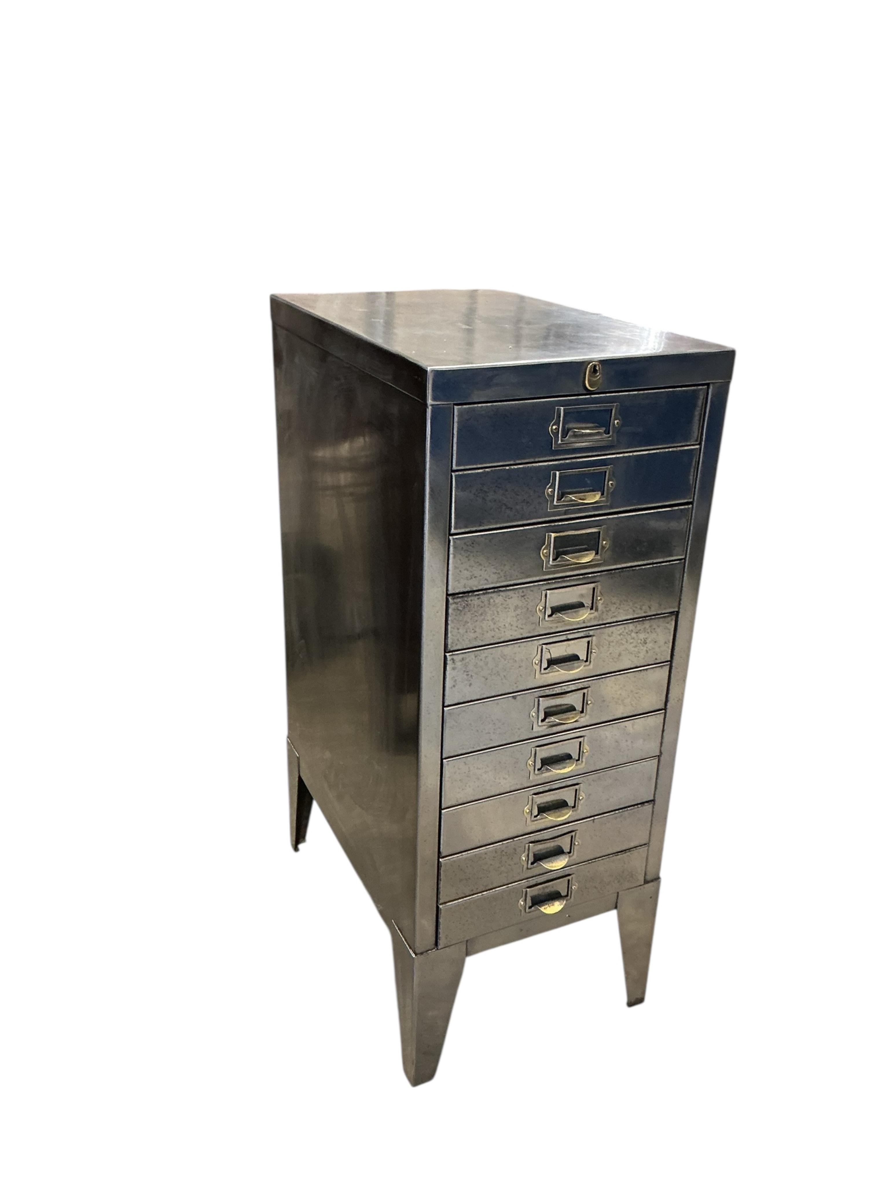 Lot 1318 , A mid century polished steel filing cabinet, width 29cm, depth 42cm, height 73cm