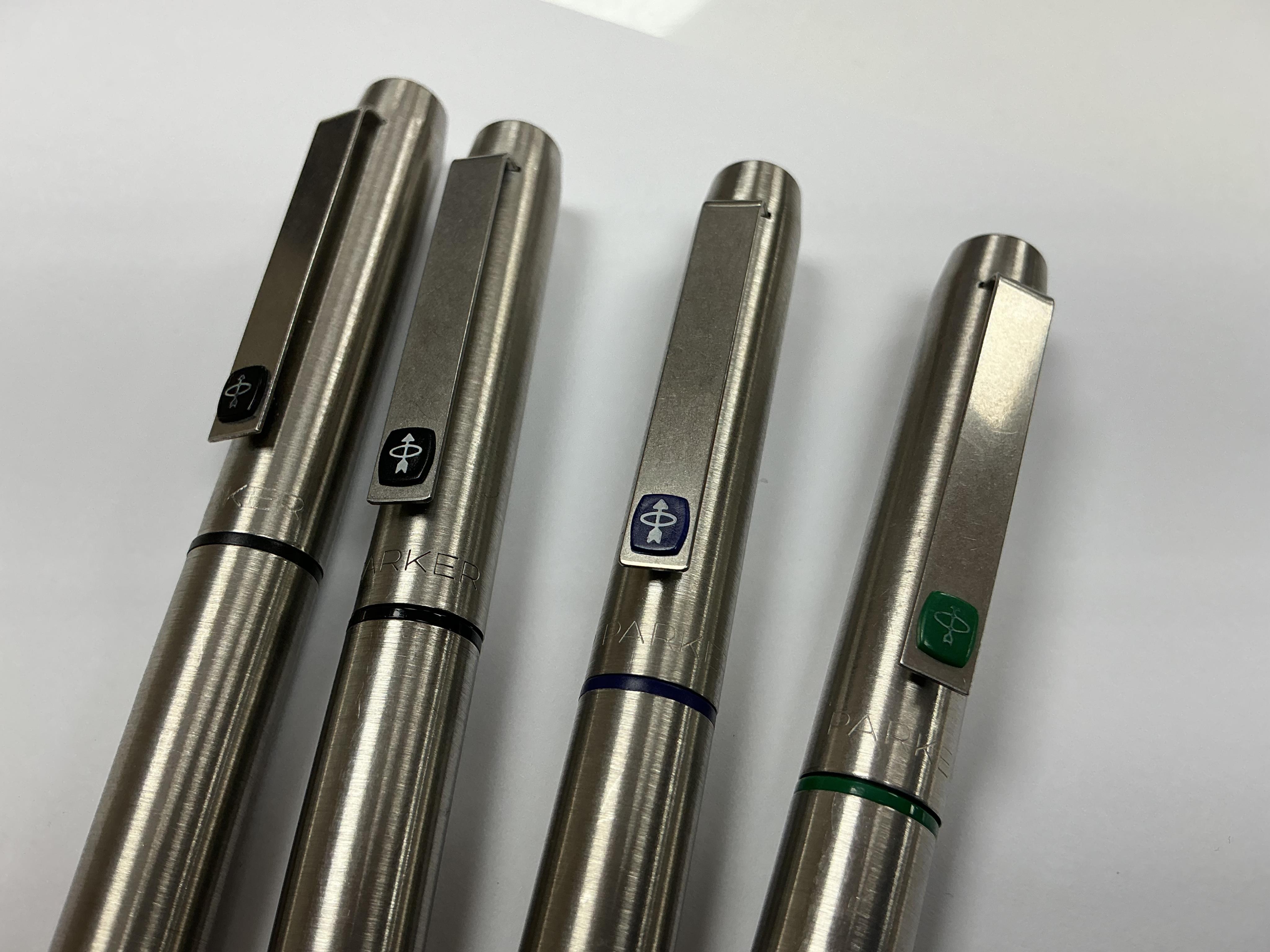 Parker '25' fountain pens with green, black and blue nib units (4)