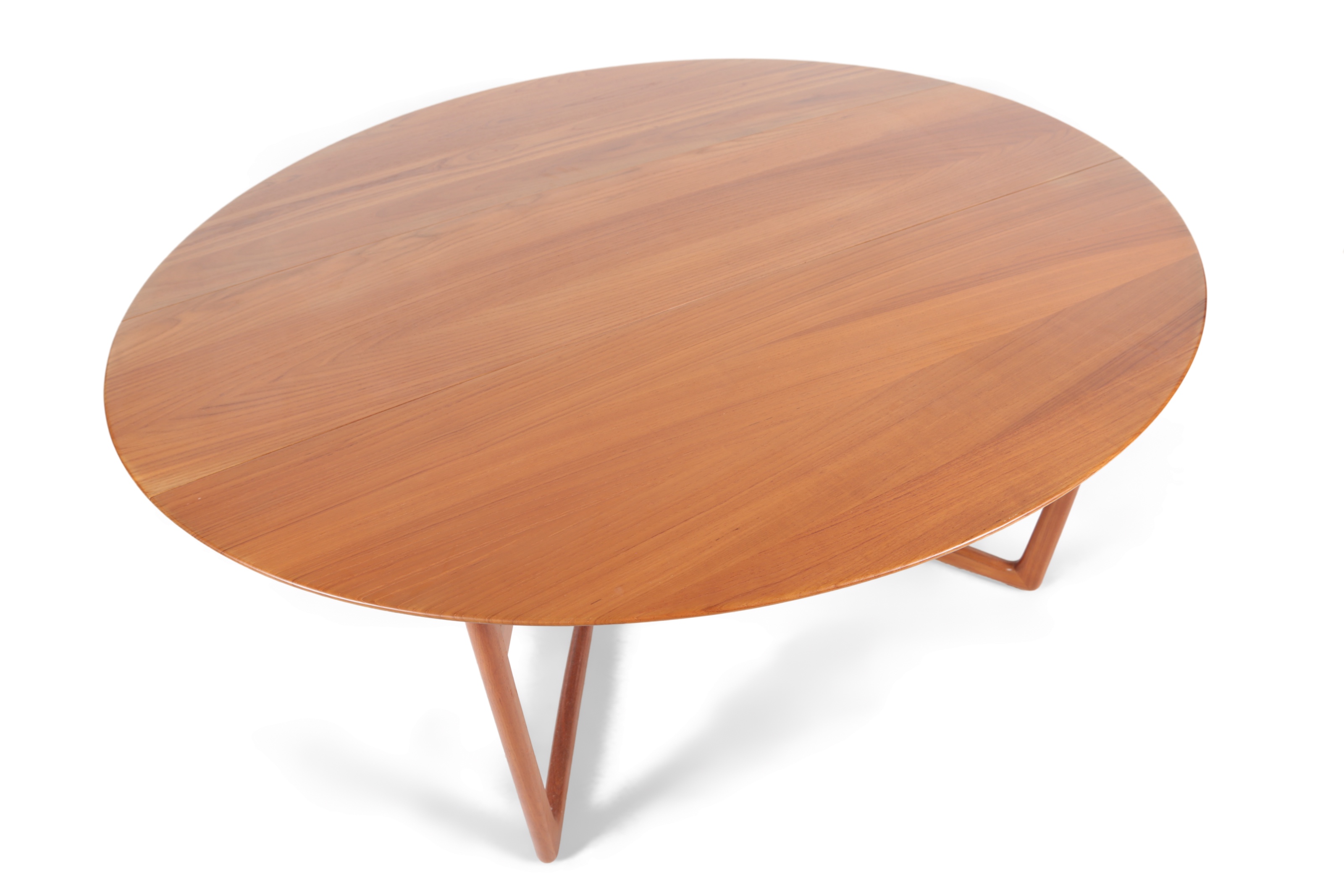 Peter Hvidt (Danish, 1916–1986) and Orla Mølgaard-Nielsen (Danish, 1907–1993) for France & Søn: A Model No. 20/59 teak drop leaf dining table, designed circa 1955-1960,