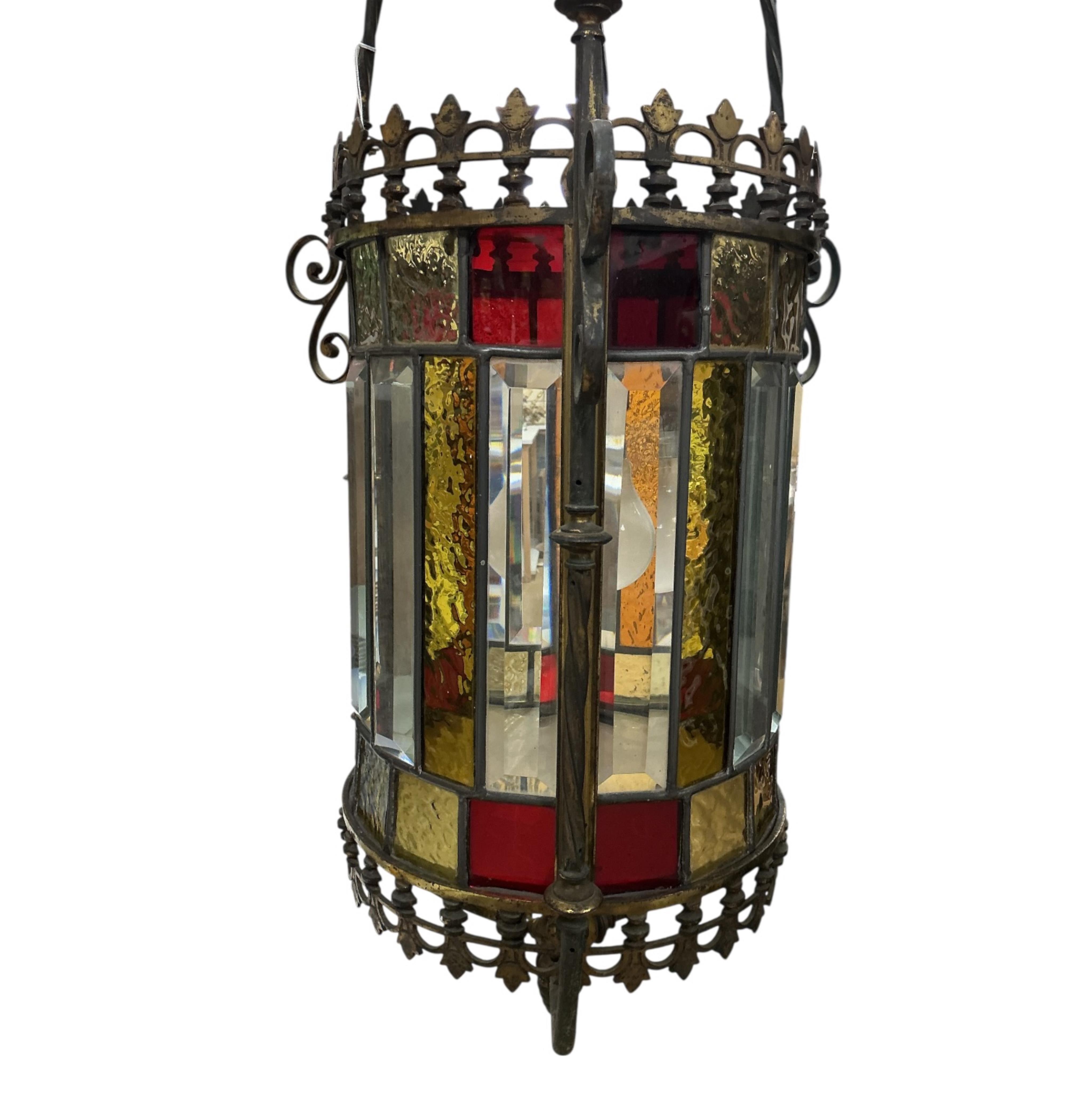 Lot 1522 , A Victorian circular stained glass and tubular brass hall lantern, 80cm high