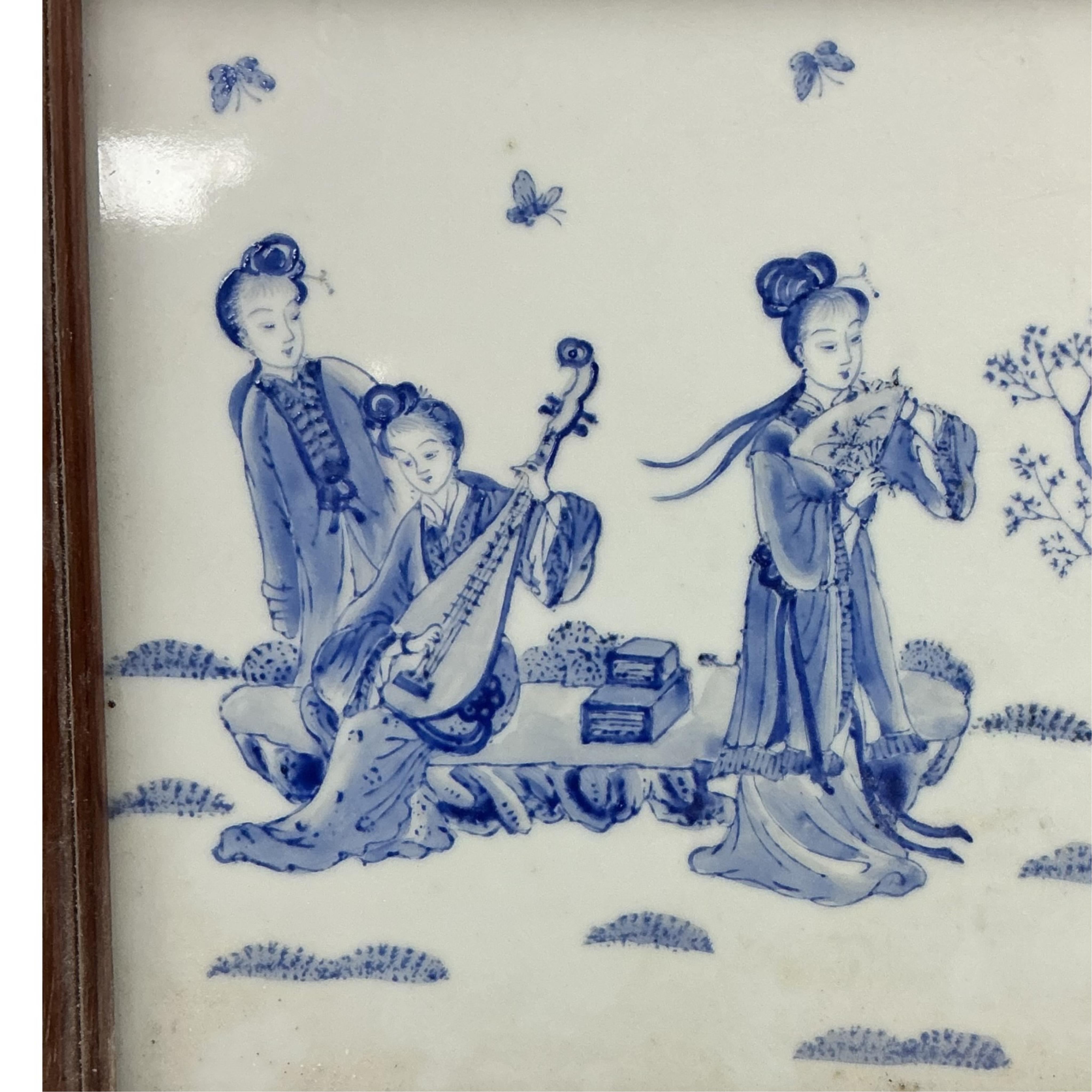 Lot 1478 , A framed Chinese porcelain tile, painted in blue enamel, tile 25cm square
