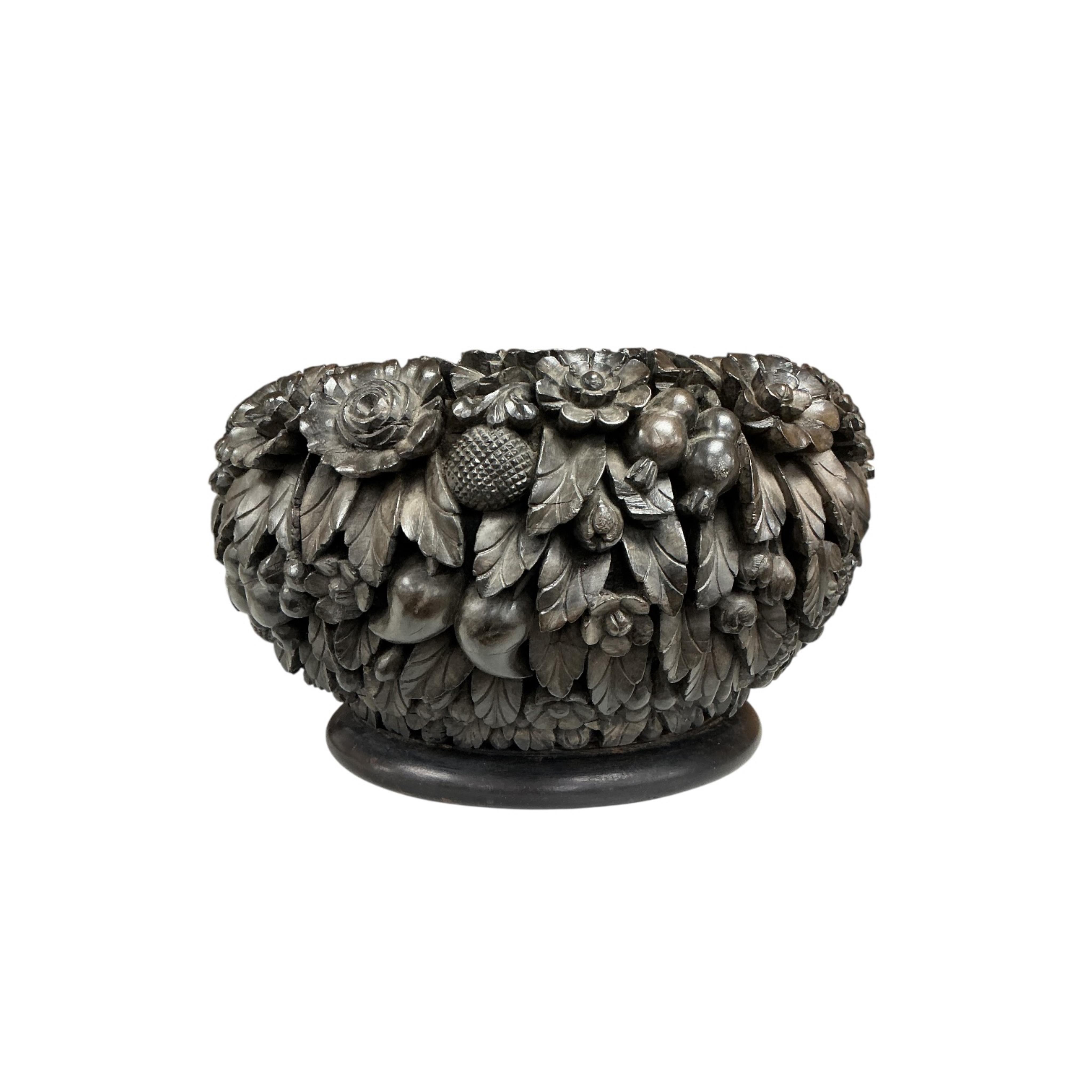 An Anglo-Indian carved hardwood bowl, 29cm diameter.