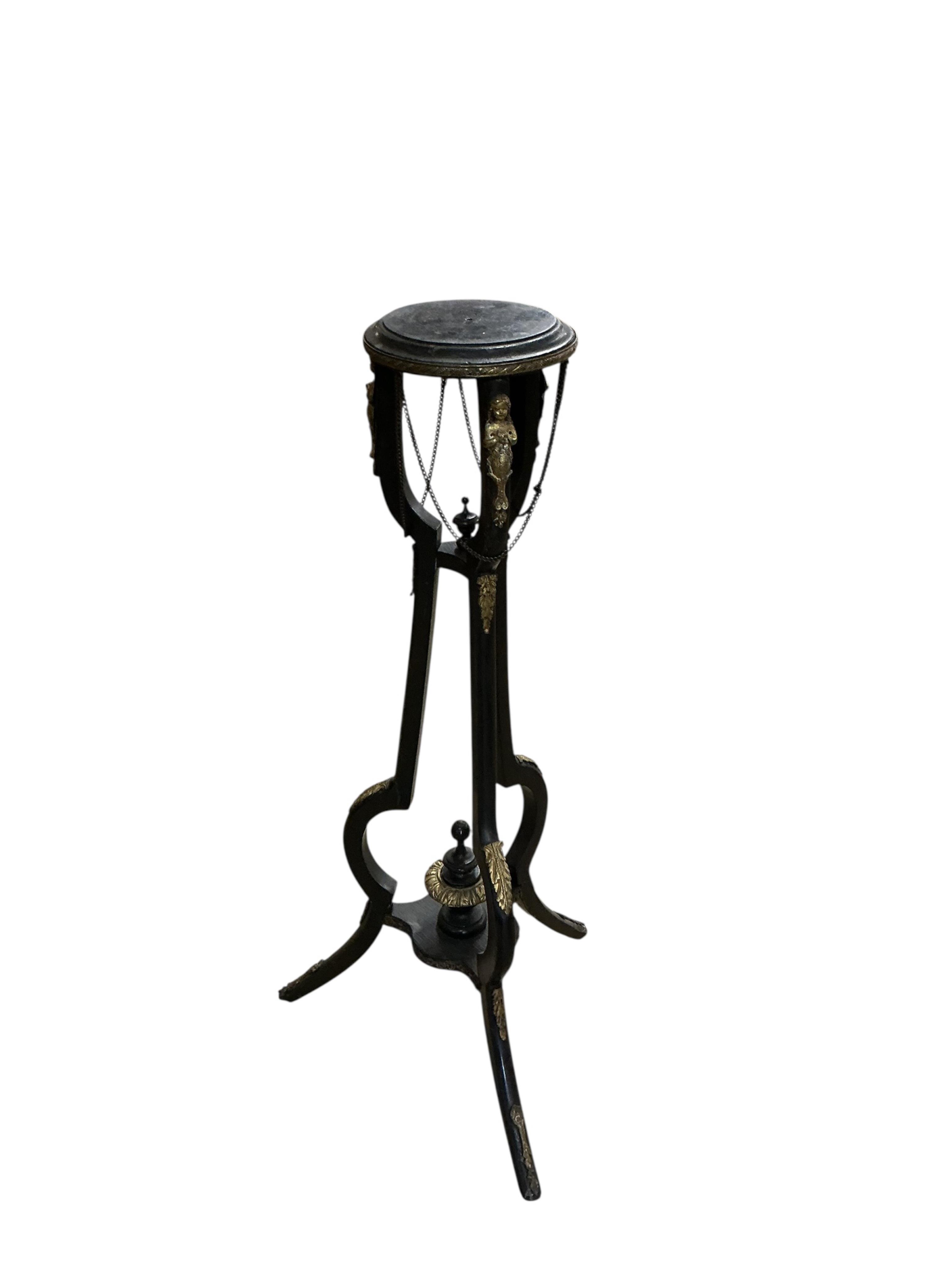 Lot 1327 , A late 19th century gilt metal mounted ebonised torchere, 90cm high