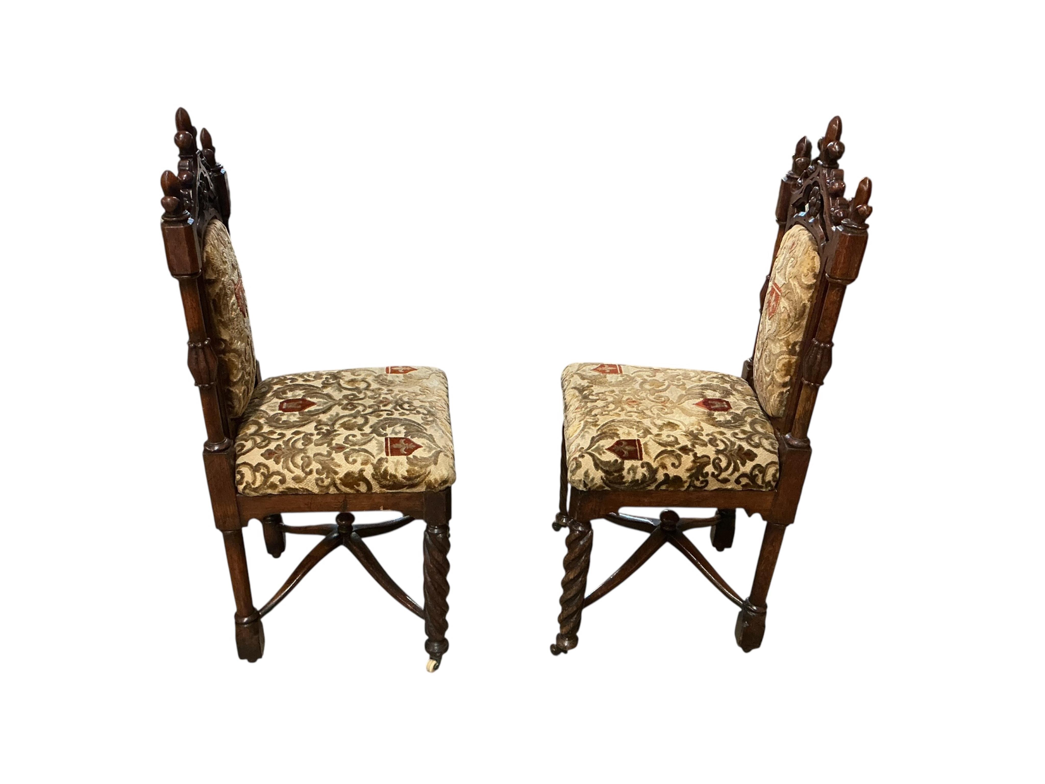 A pair of Victorian Gothic Revival carved oak side chairs, 104cm high.