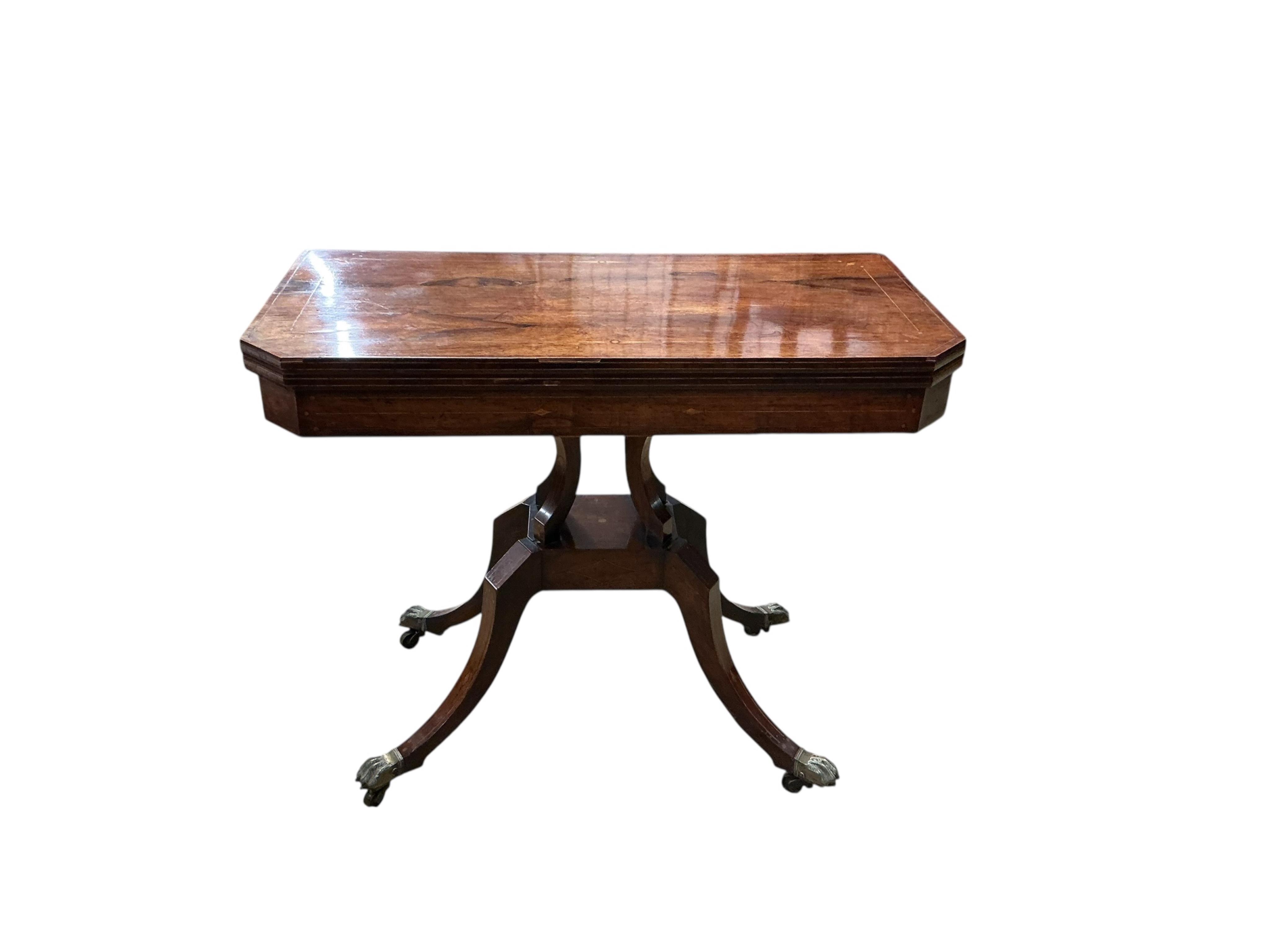 Lot 3439 , A Regency rosewood card table, width 92cm, depth 46cm, height 74cm