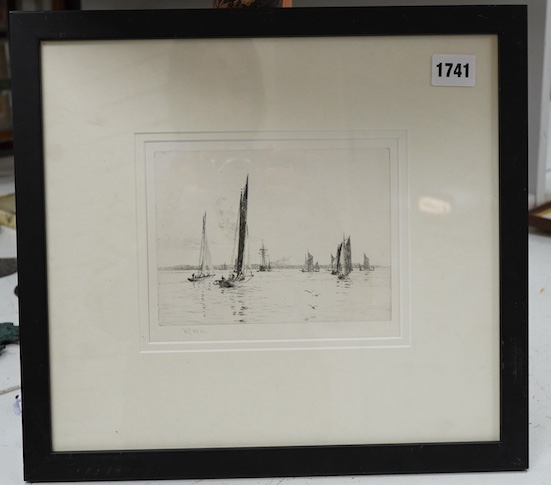 William Lionel Wyllie (1851-1931), ‘Fishing Boats in a Bay’, signed in pencil to the margin, etching, 14 x 17cm