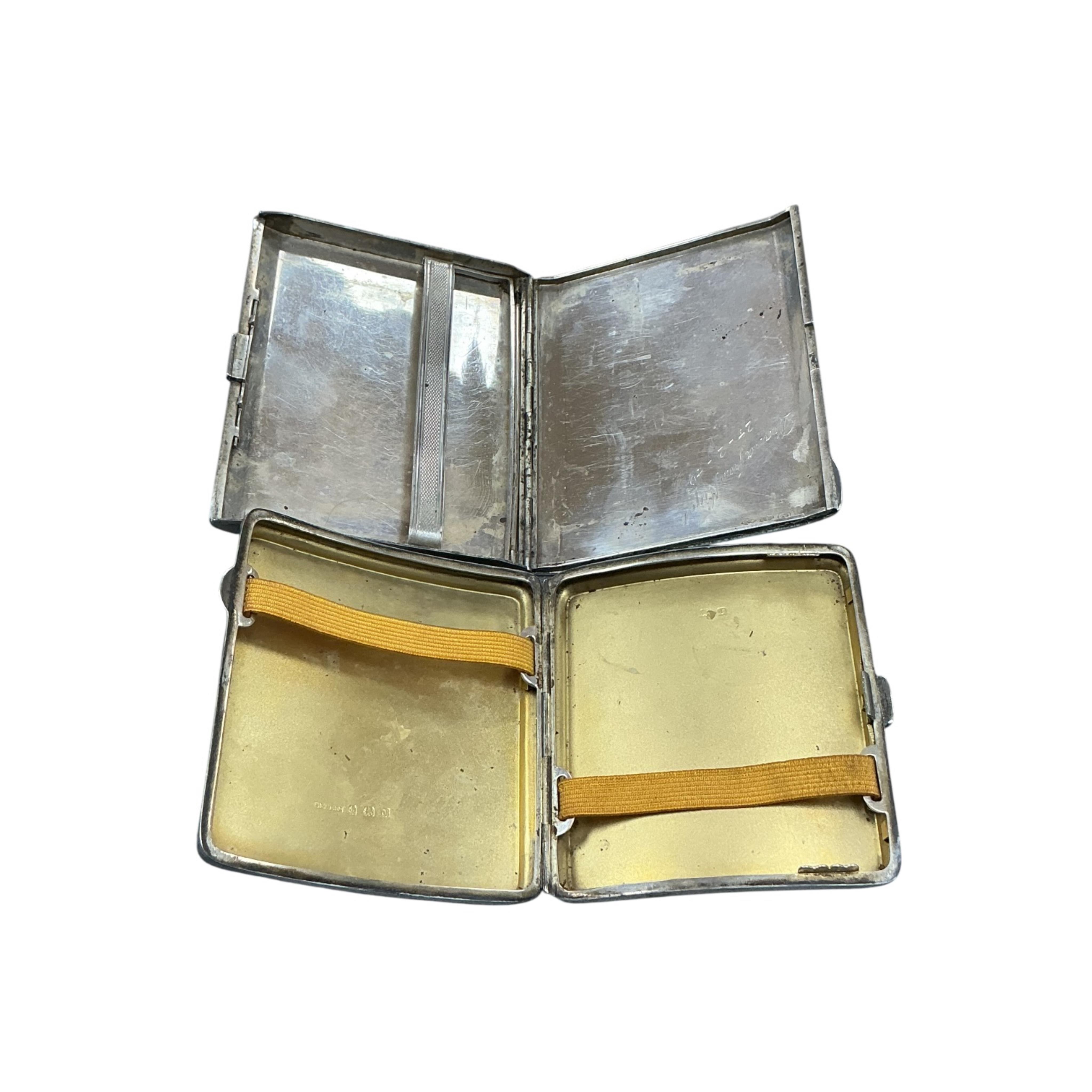 Lot 850 , A George V engine turned silver cigarette case by S. Blanckensee & Son Ltd, Birmingham, 1933, 82mm, together with an Italian 925 cigarette case, with yellow metal stripes and interior engraved inscription, gross weight 8