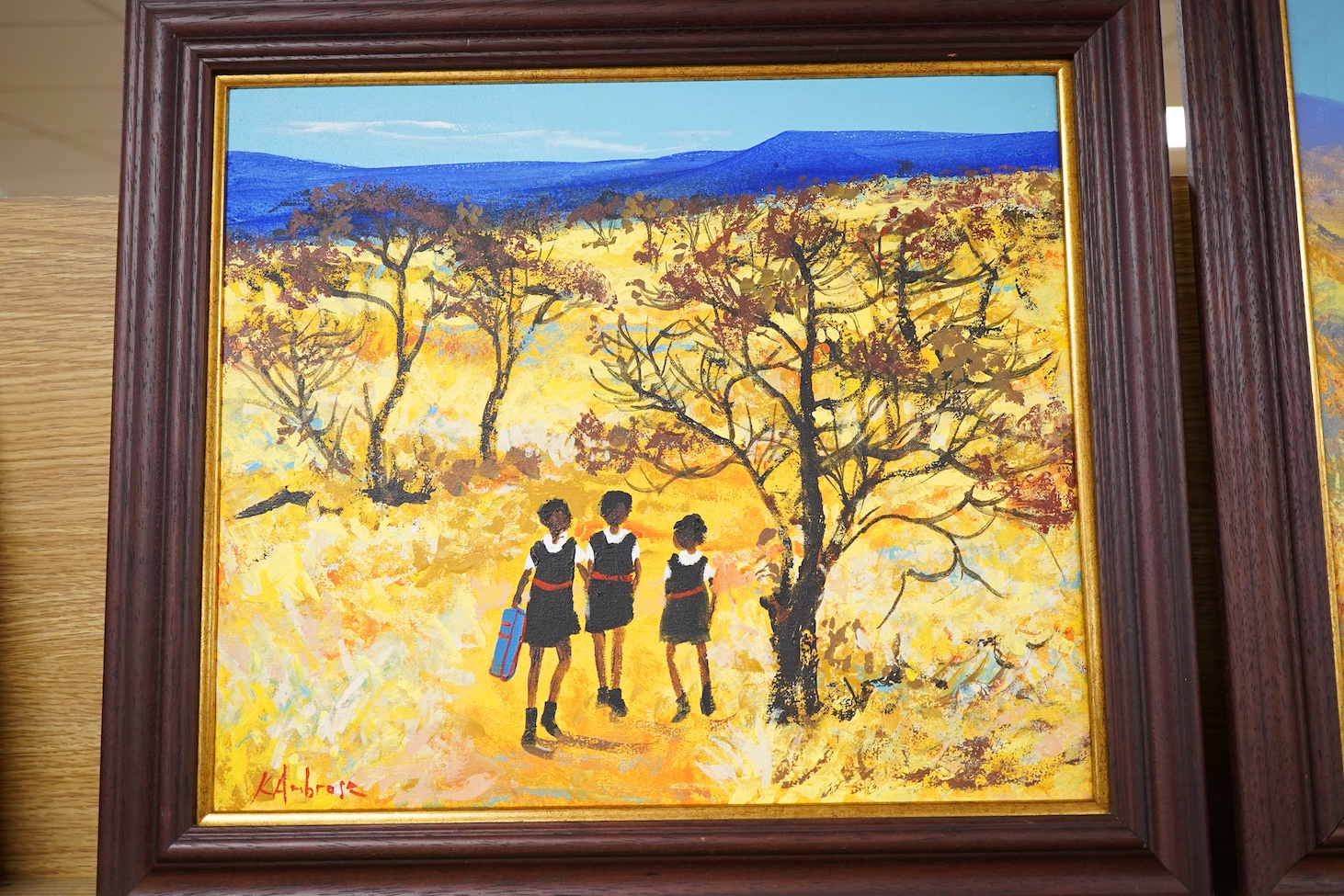 Lot 711 , Katherine Ambrose (South African), African village scenes with figures, each signed, two oils on canvas, 39 x 34cm
