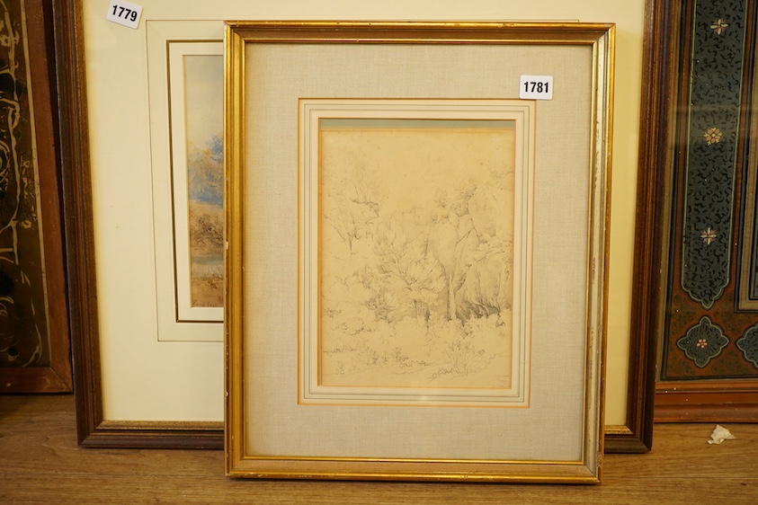 Lot 1781 , Theodore Caruelle d’Aligny (French, 1798-1871), ‘Moucher va Rhône’, dated 1829, pencil study, Rowley Gallery label verso, 26 x 18cm