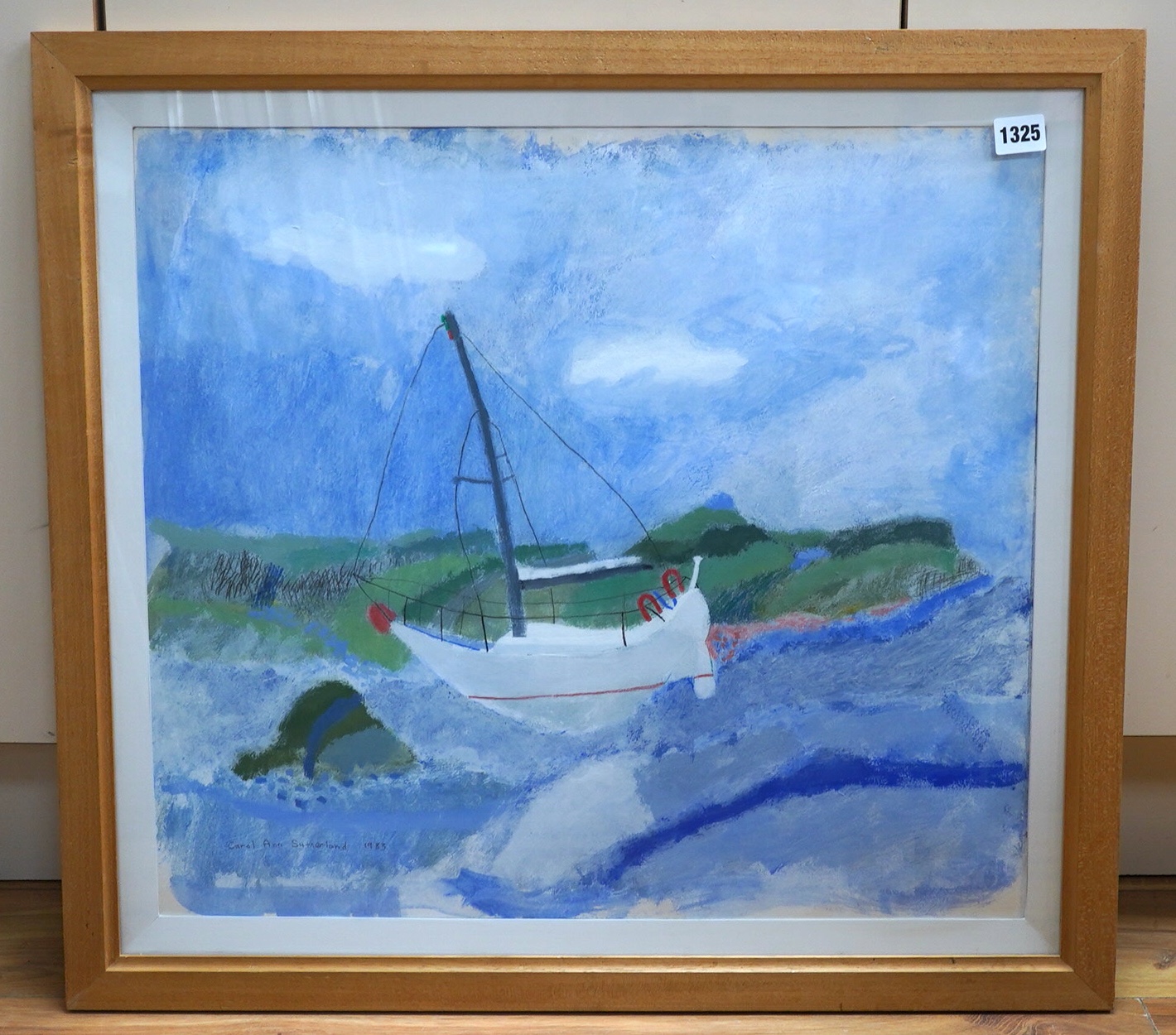 Lot 3325 , Carol Ann Sutherland (b.1952), ‘Going Round Stour Point’, signed and dated 1983, Modern British mixed media, 50 x 56cm, Provenance: Purchased from Mercury Gallery Ltd., Mayfair, London, 9th September 1983, for £350