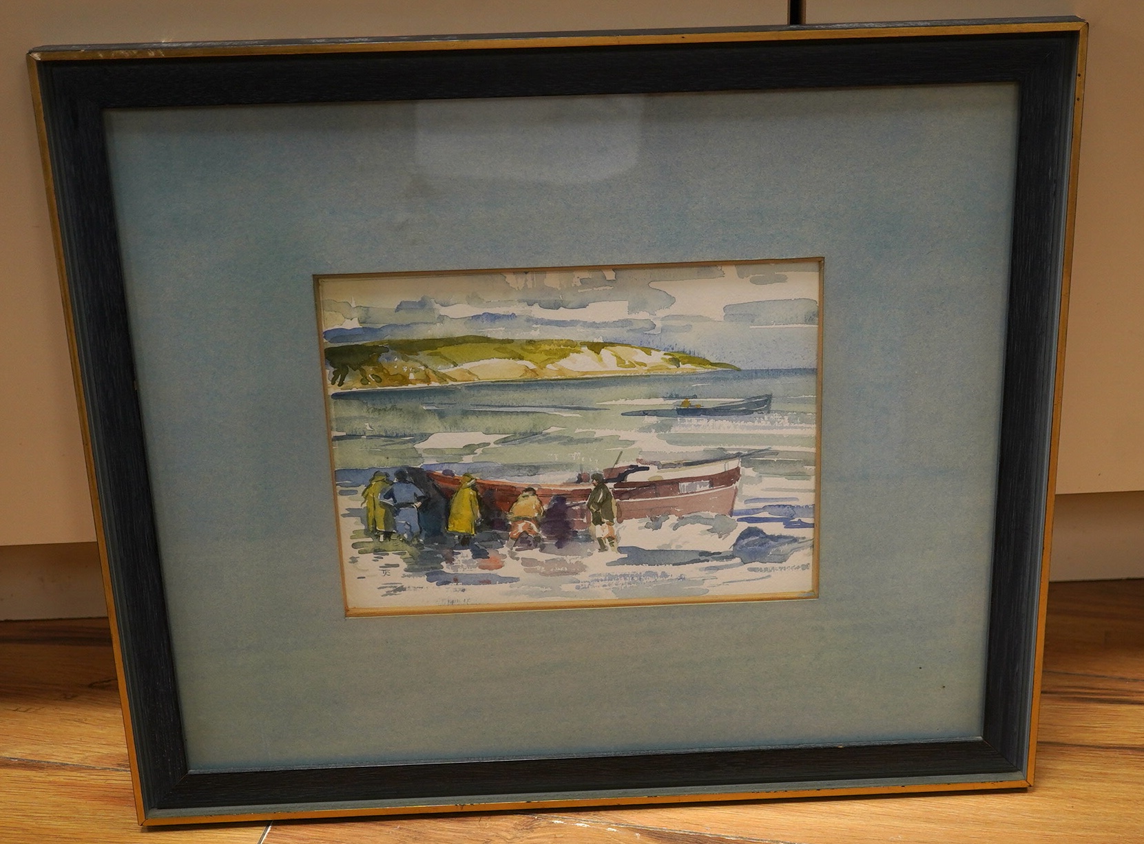 Tom Coates, RBA. (b.1941), ‘Fishermen Returning’, monogrammed, watercolour, 16.5 x 23cm