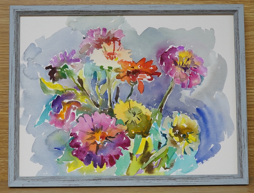 Contemporary school, still life of flowers, unsigned, watercolour, 24 x 33cm