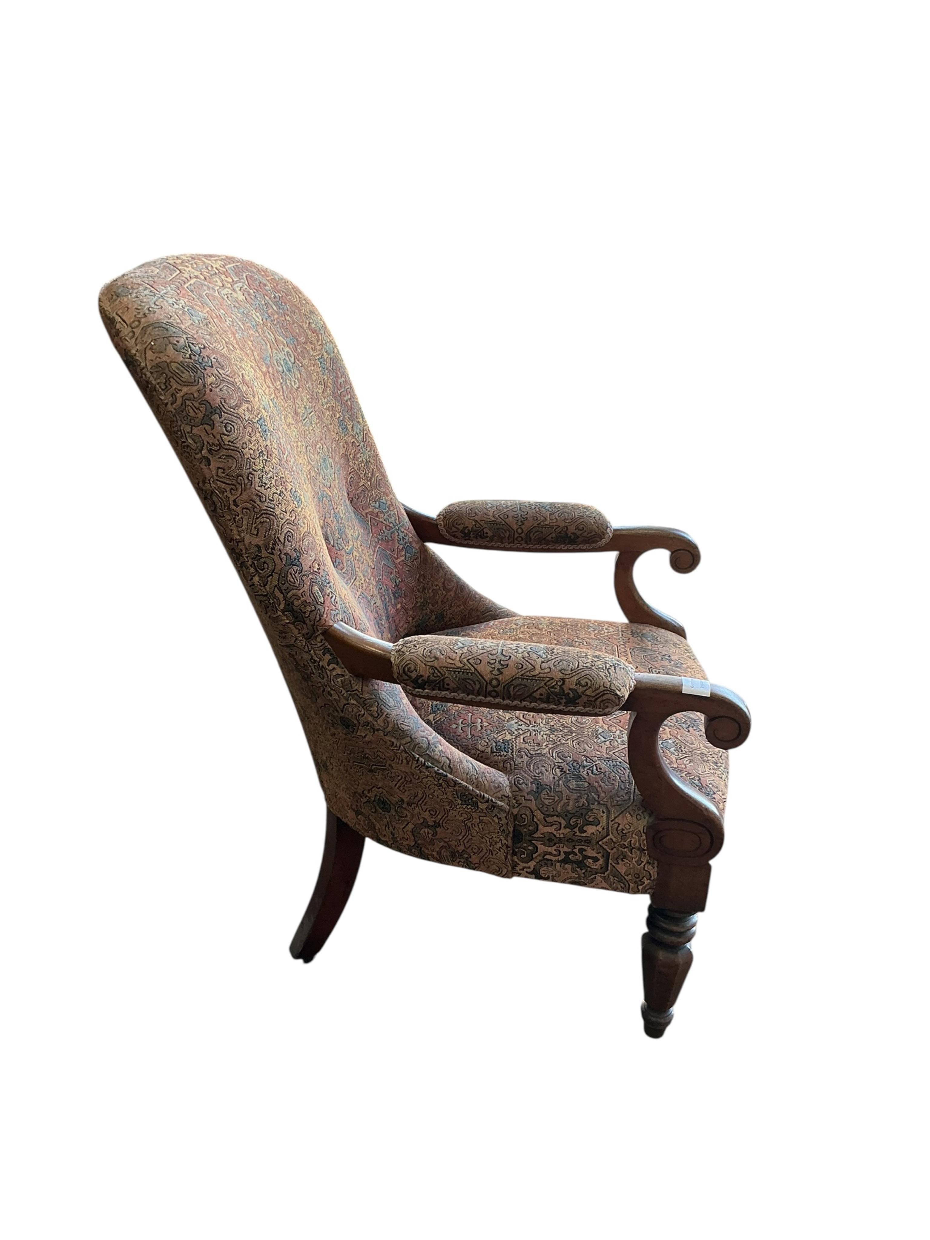 Lot 1121 , A Victorian mahogany upholstered armchair, width 66cm, depth 60cm, height 98cm