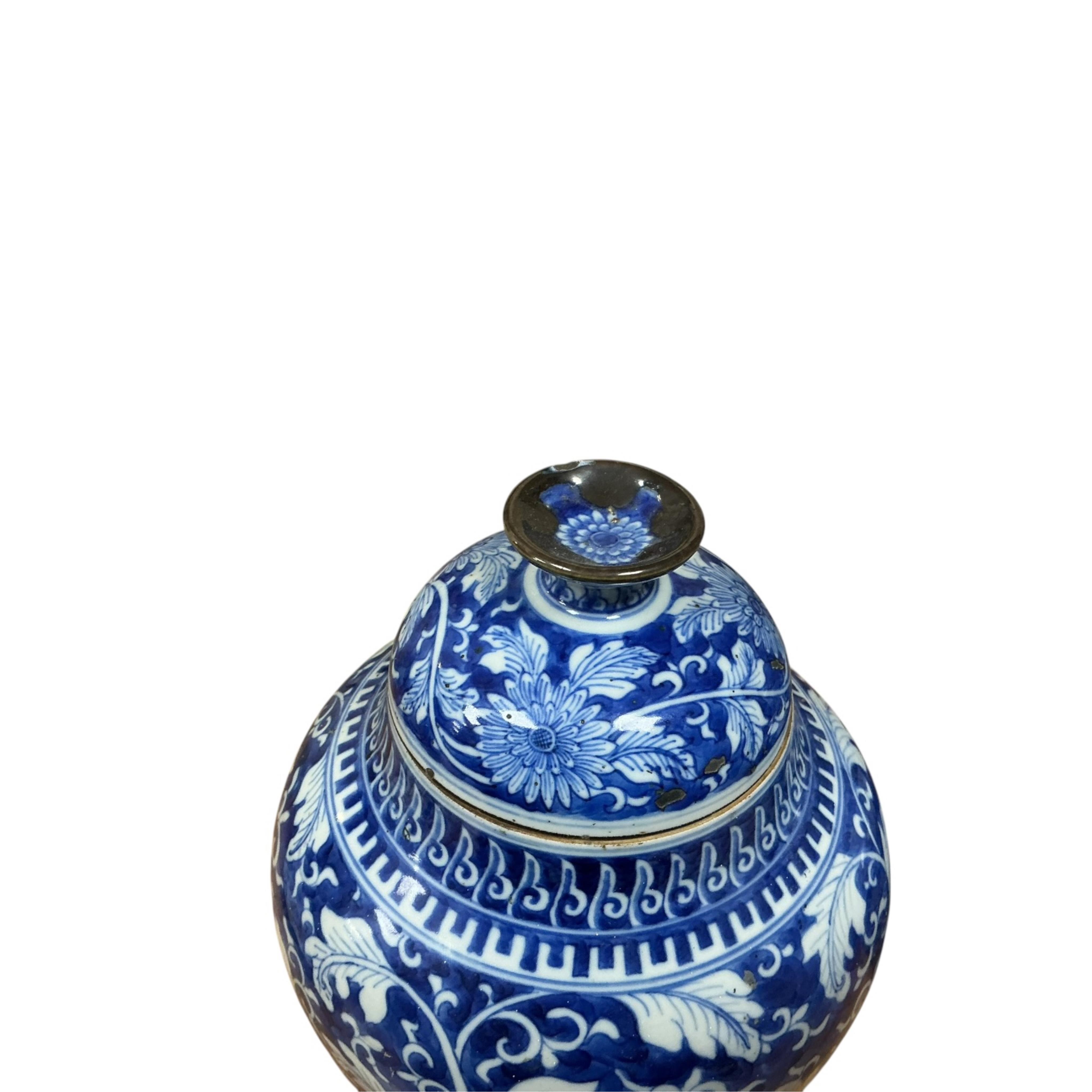 A pair of Chinese blue and white ginger jars with covers, late 19th century, height 24cm.