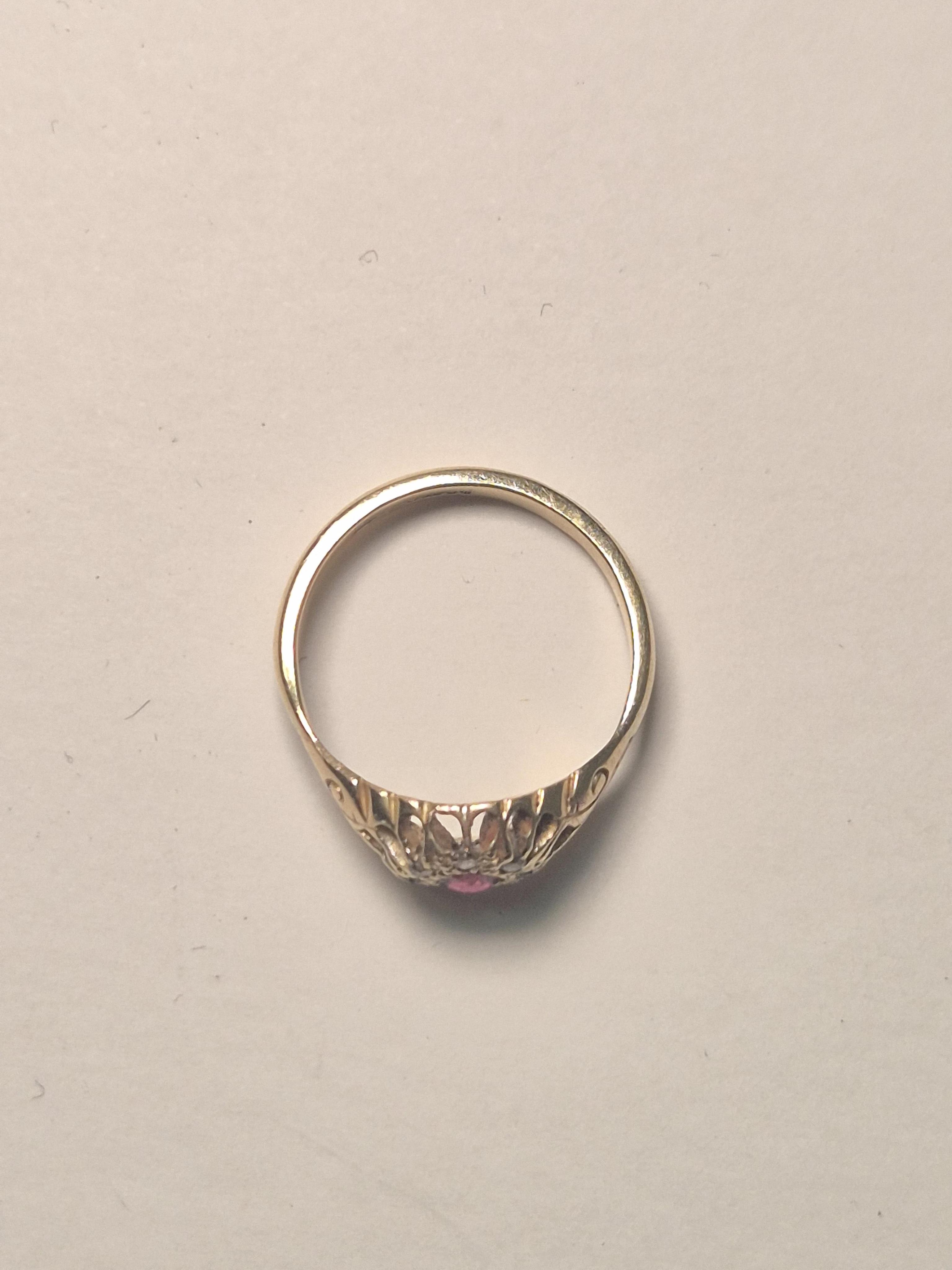 Lot 922 , A recent 18ct gold, ruby and diamond set cluster ring, with carved shoulders, size L/M, gross weight 3 grams.