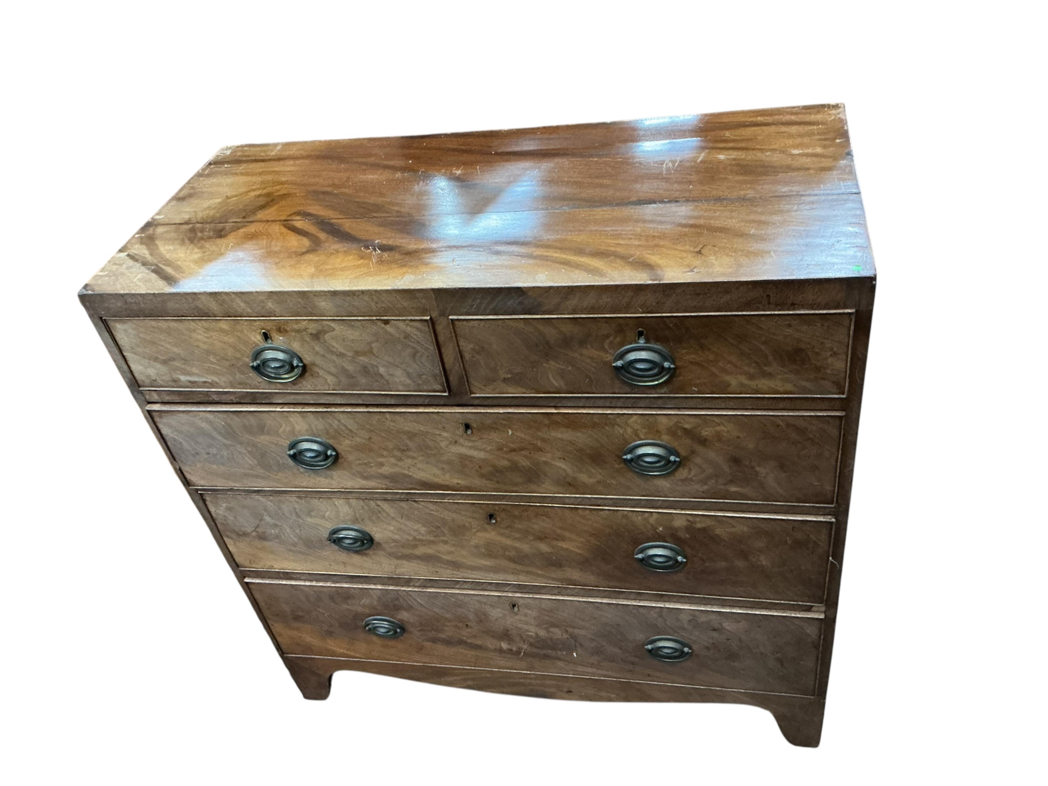 A Regency mahogany chest of two short and three long drawers, width 100cm, depth 45cm, height 99cm
