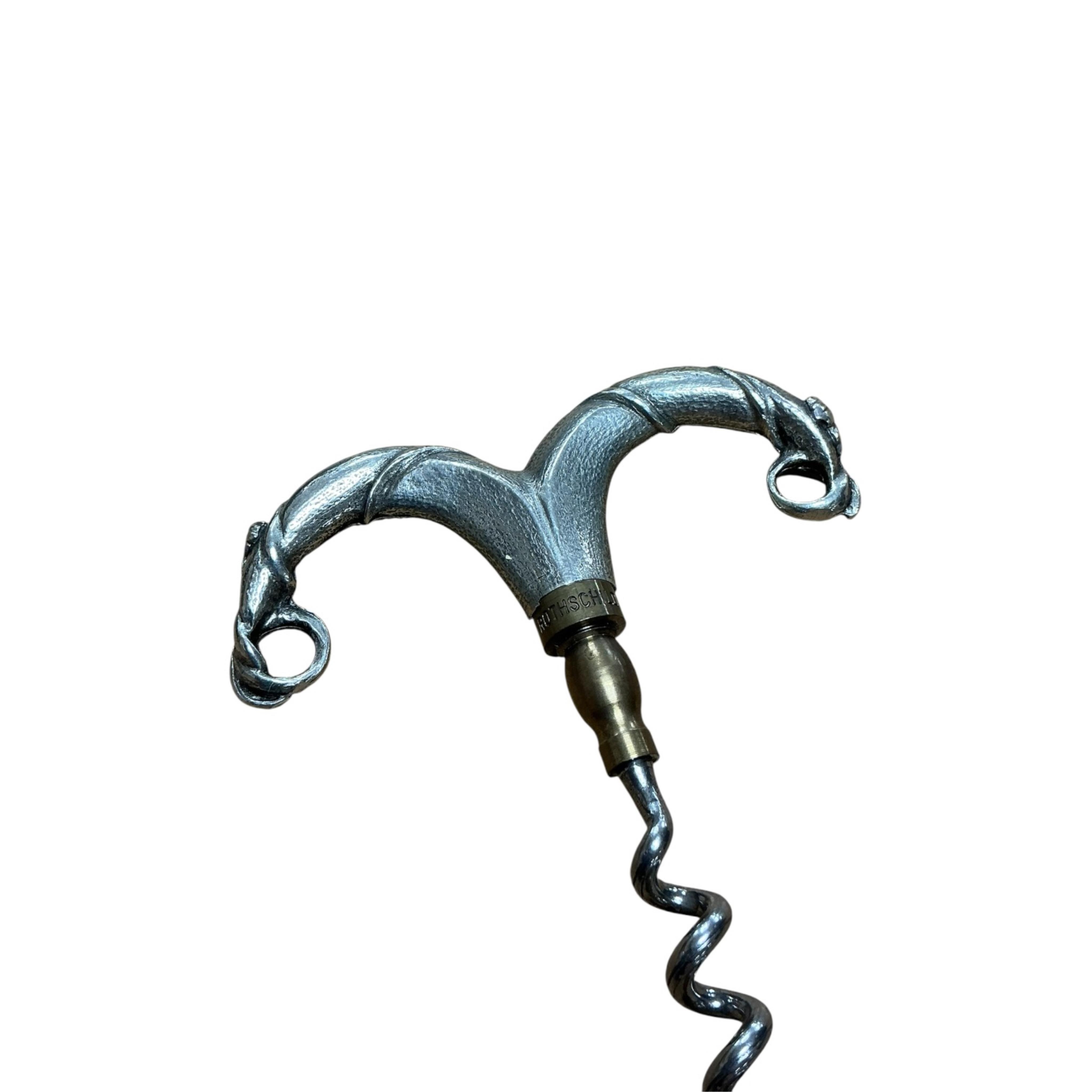 A white metal mounted Chateau Mouton Rothschild corkscrew, boxed, length 10cm.