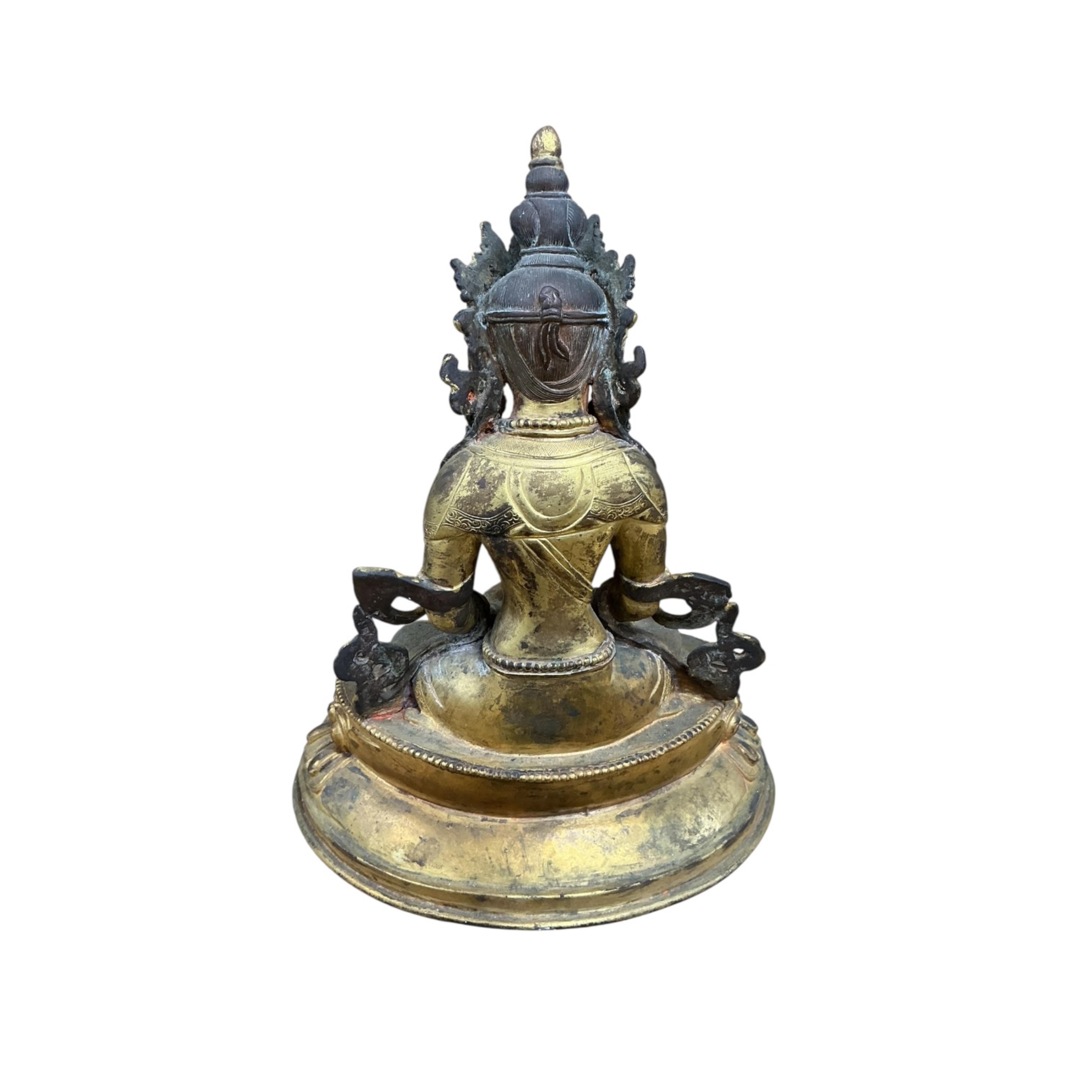 A Tibetan style ‘jewelled’ gilt bronze seated figure of Amitayus height 23cm.