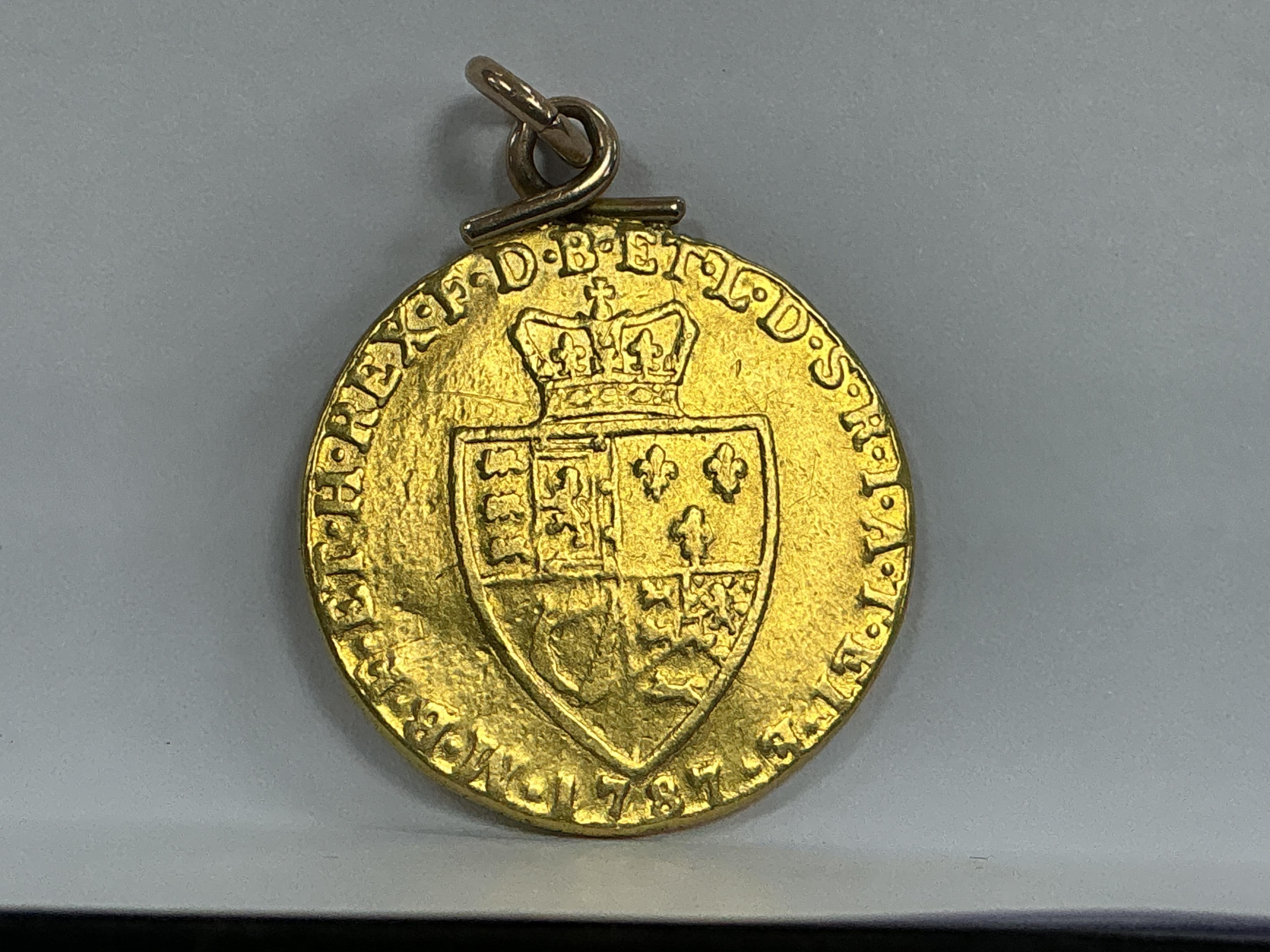 Lot 2095 , British gold coins, George III, gold spade type guinea, 1787, fine, mounted
