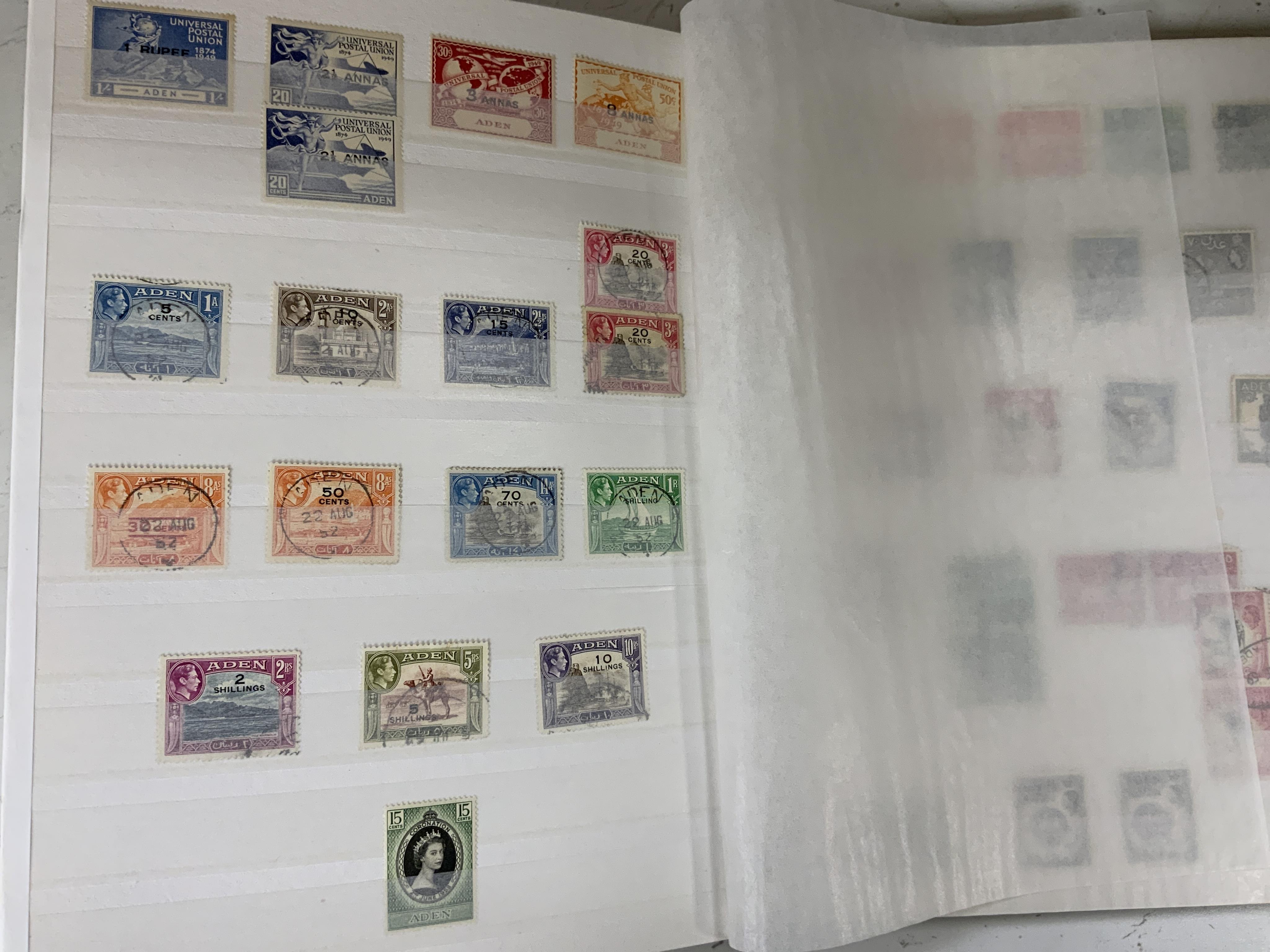 Lot 2172 , Twelve stamp stock books containing a variety of World postage stamps, countries including; Canada, Germany, Aden, Guernsey, St. Lucia, St. Kitts, Malta, Australia, northern Rhodesia, USA, each album dedicated to either