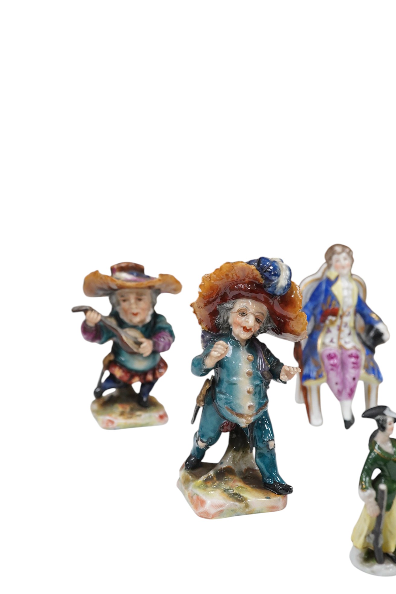A mixed collection of porcelain to include a figural Royal Dux Bon Bon dish, a cauldron-form pot-pourri and Continental figures, largest 23cm high