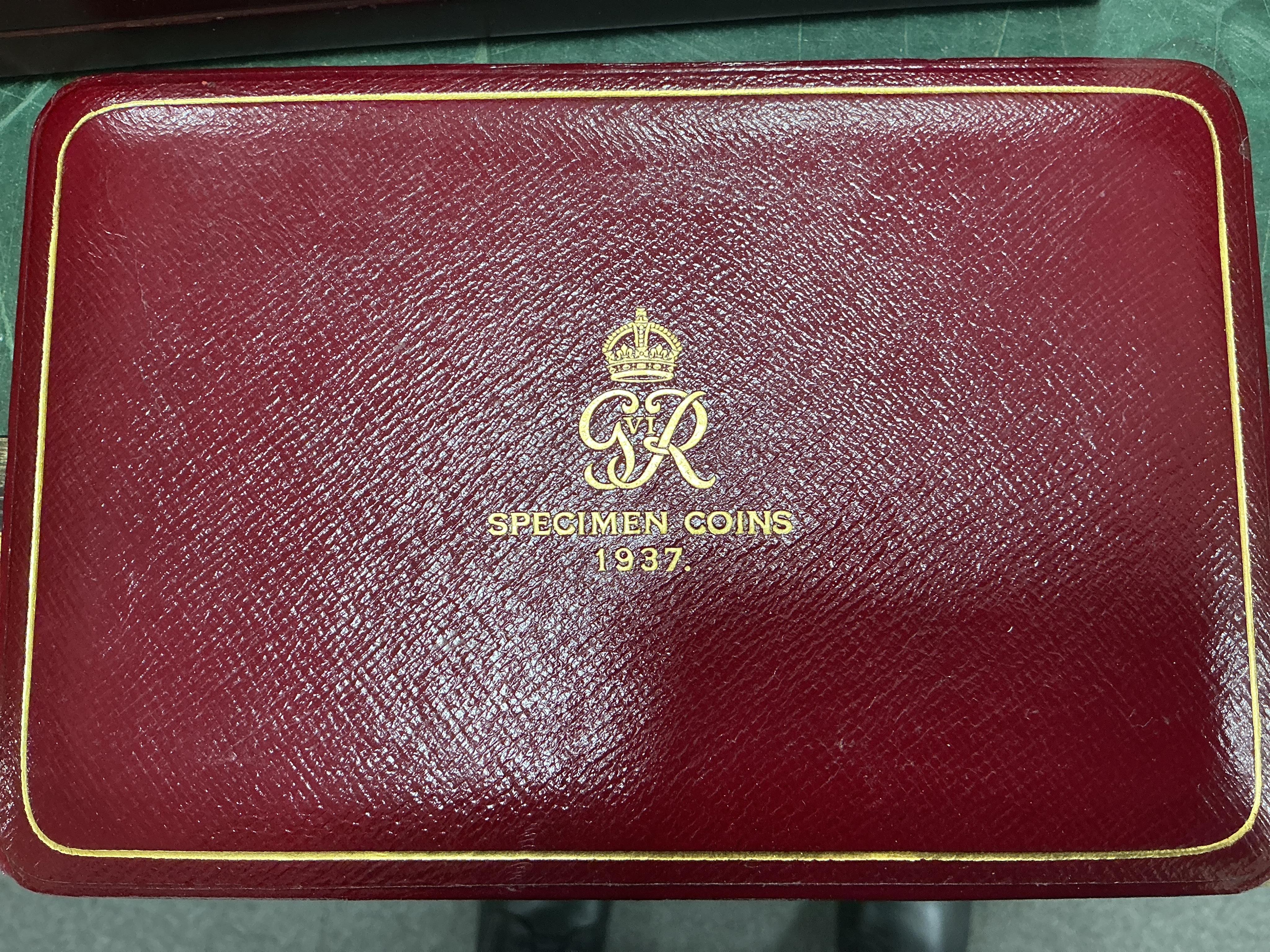 Lot 2051 , British coins, George V, specimen set of 15 coins, 1937;, silver crown, half crown, two shillings, shilling (England and Scotland), sixpence and threepence pence, Maundy silver 1d to 4d, brass threepence, bronze farthing