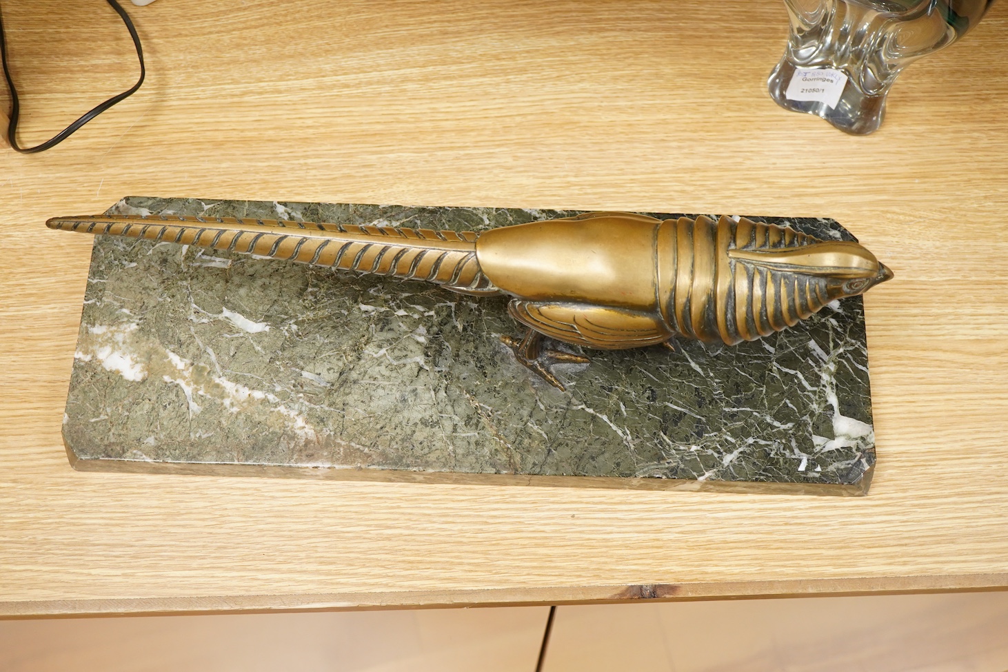 Lot 3162 , Marcel Bouraine, (1886/1948) a French Art Deco bronze pheasant on canted rectangular green marble plinth, length 52cm
