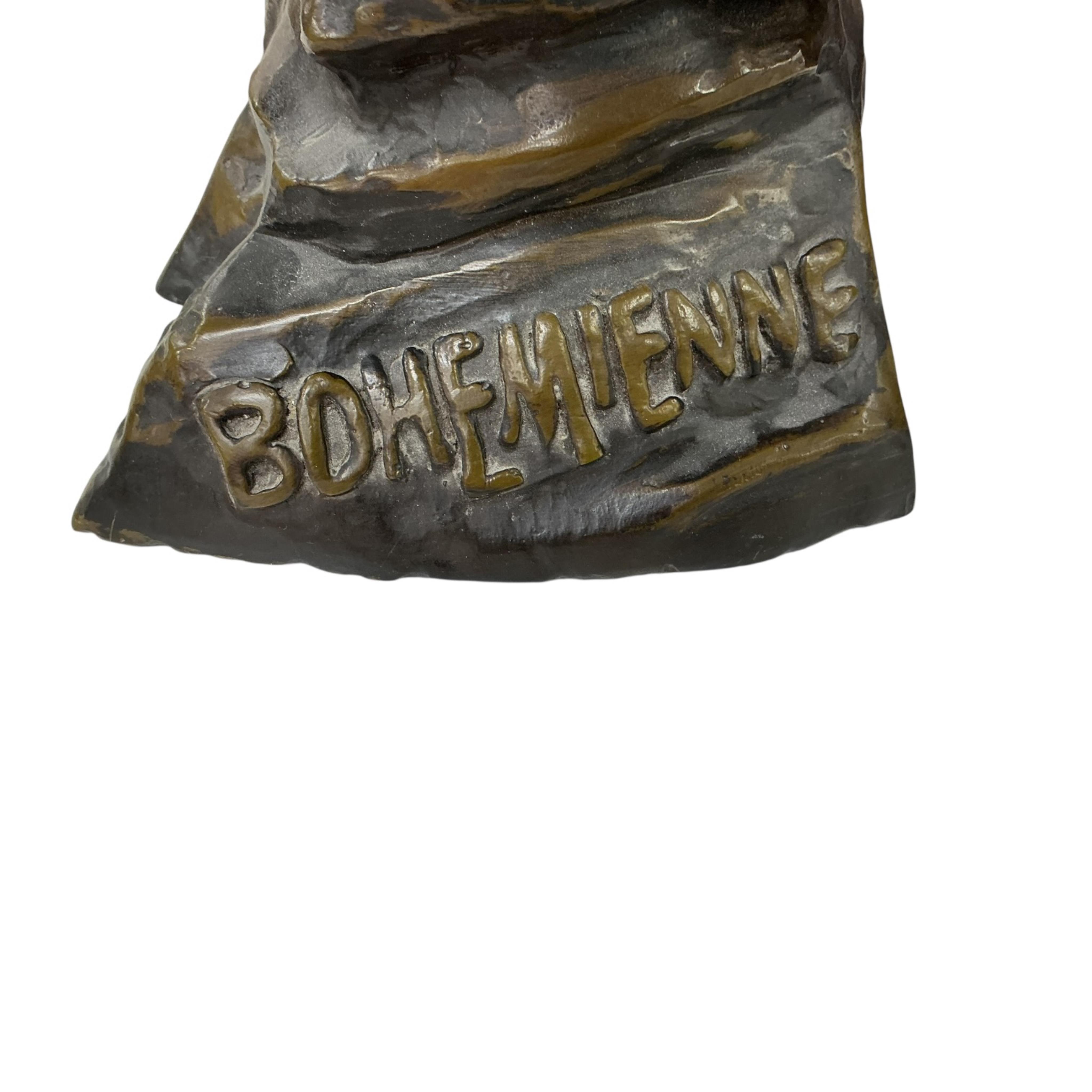 An Art Nouveau style bronze bust, titled “Bohemienne” to base, height 51cm.
