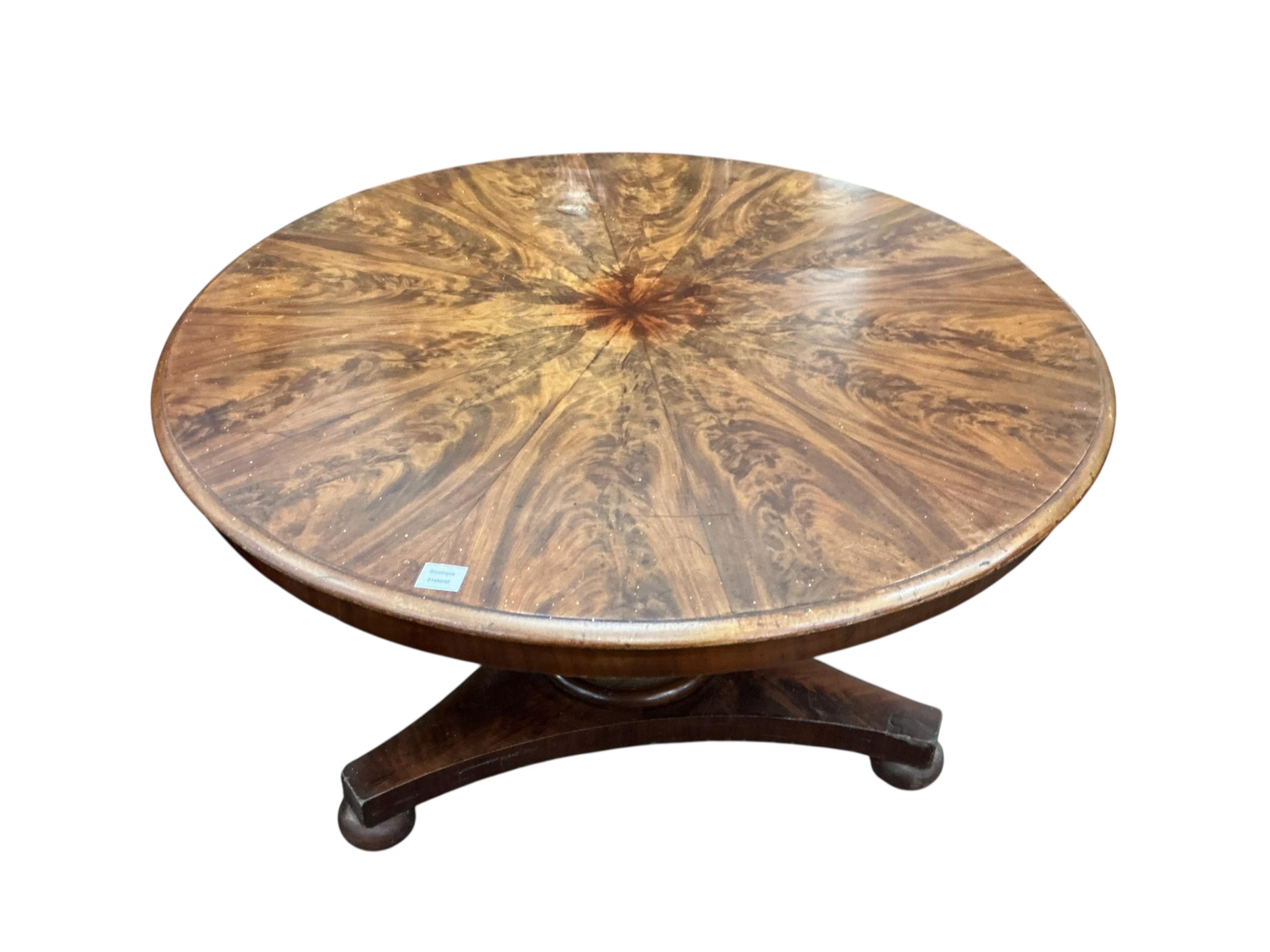 Lot 1085 , An early Victorian mahogany circular tilt top breakfast table, diameter 120cm, height 73cm