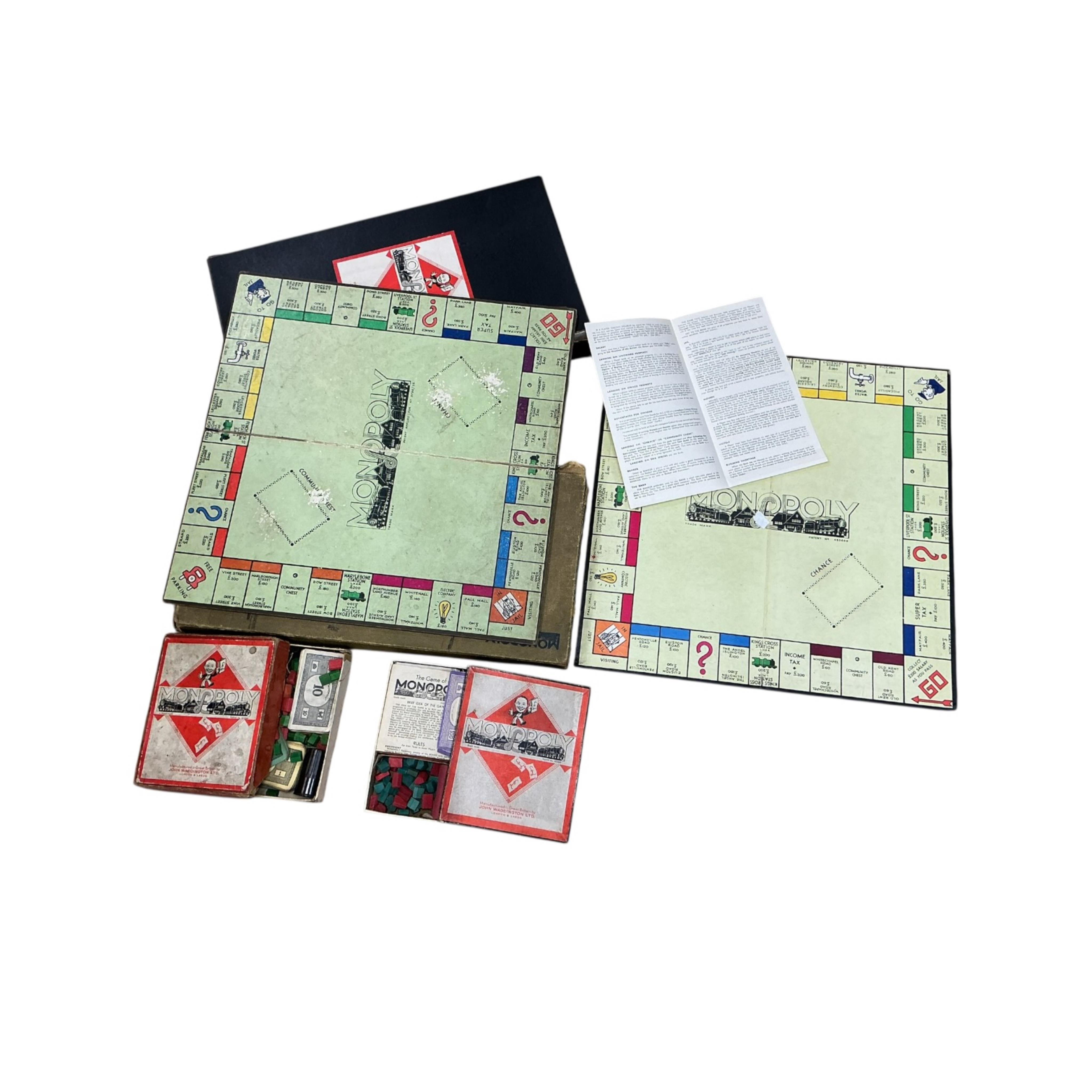 Lot 1372 , Four Monopoly board games, a gold edition, two 1930s editions, and another.