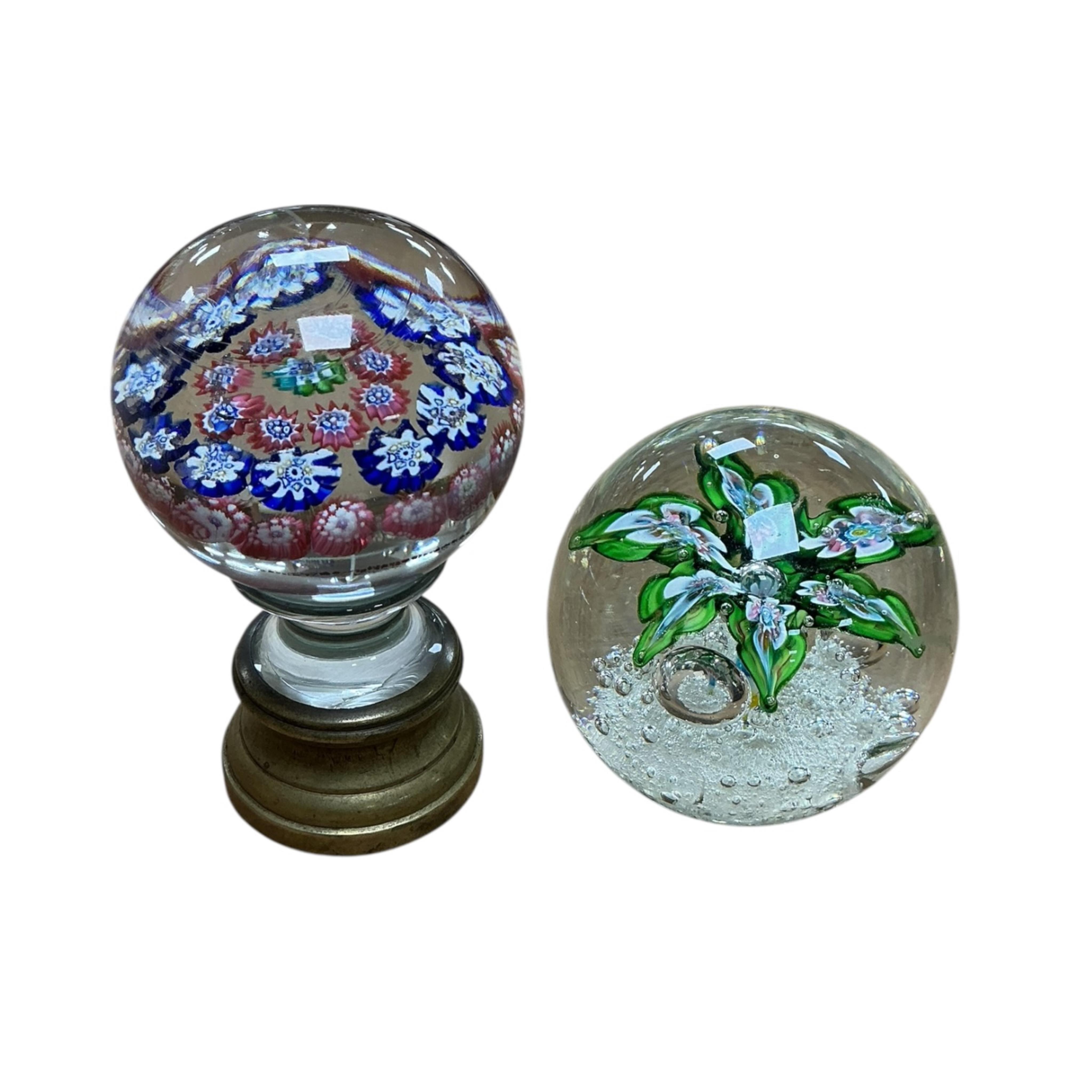 Lot 1409 , A Millifiore glass door handle, height 10cm and a paperweight