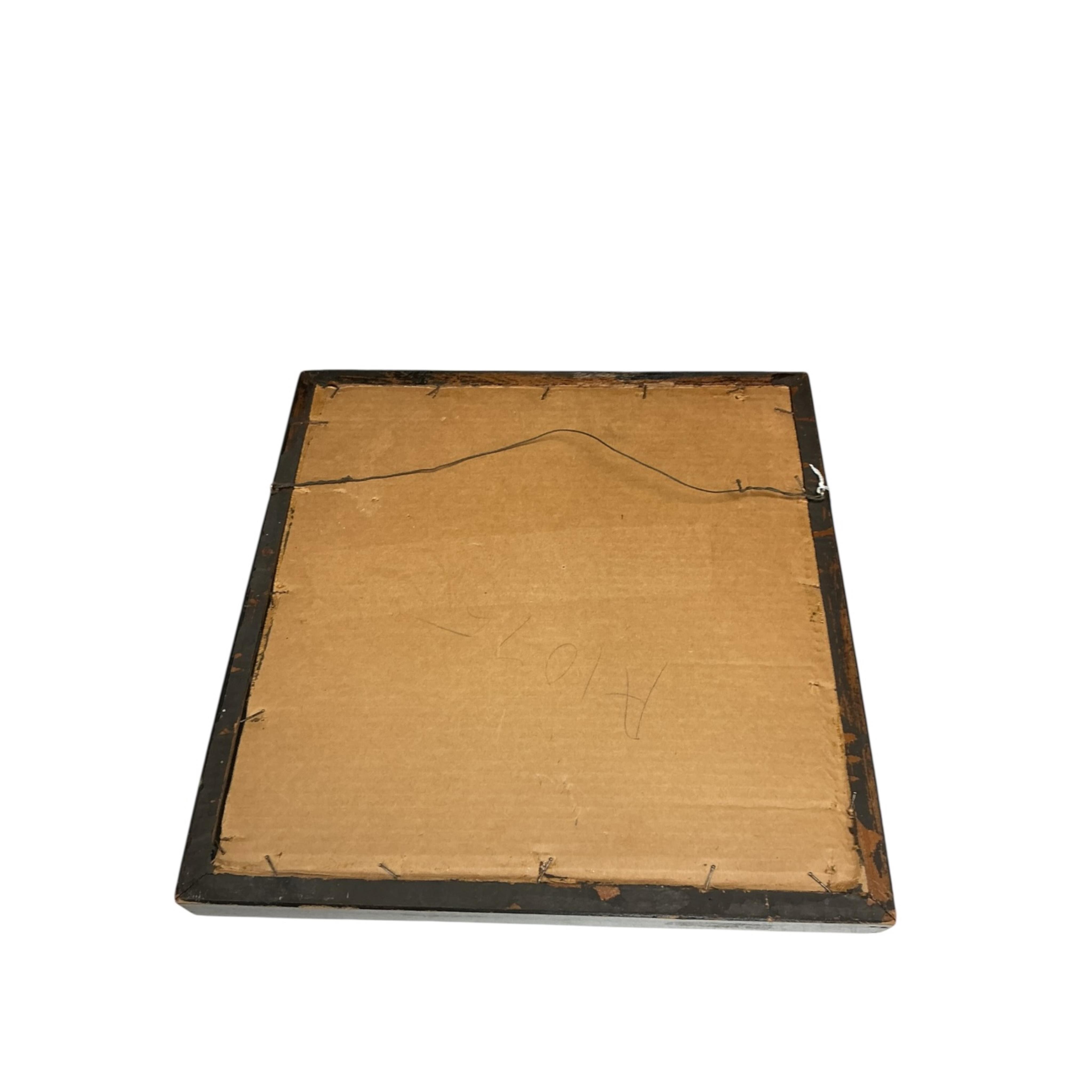 In good condition, colours remain bright and no visible pulls to the thread. The glass is dirty and the frame has some wear.