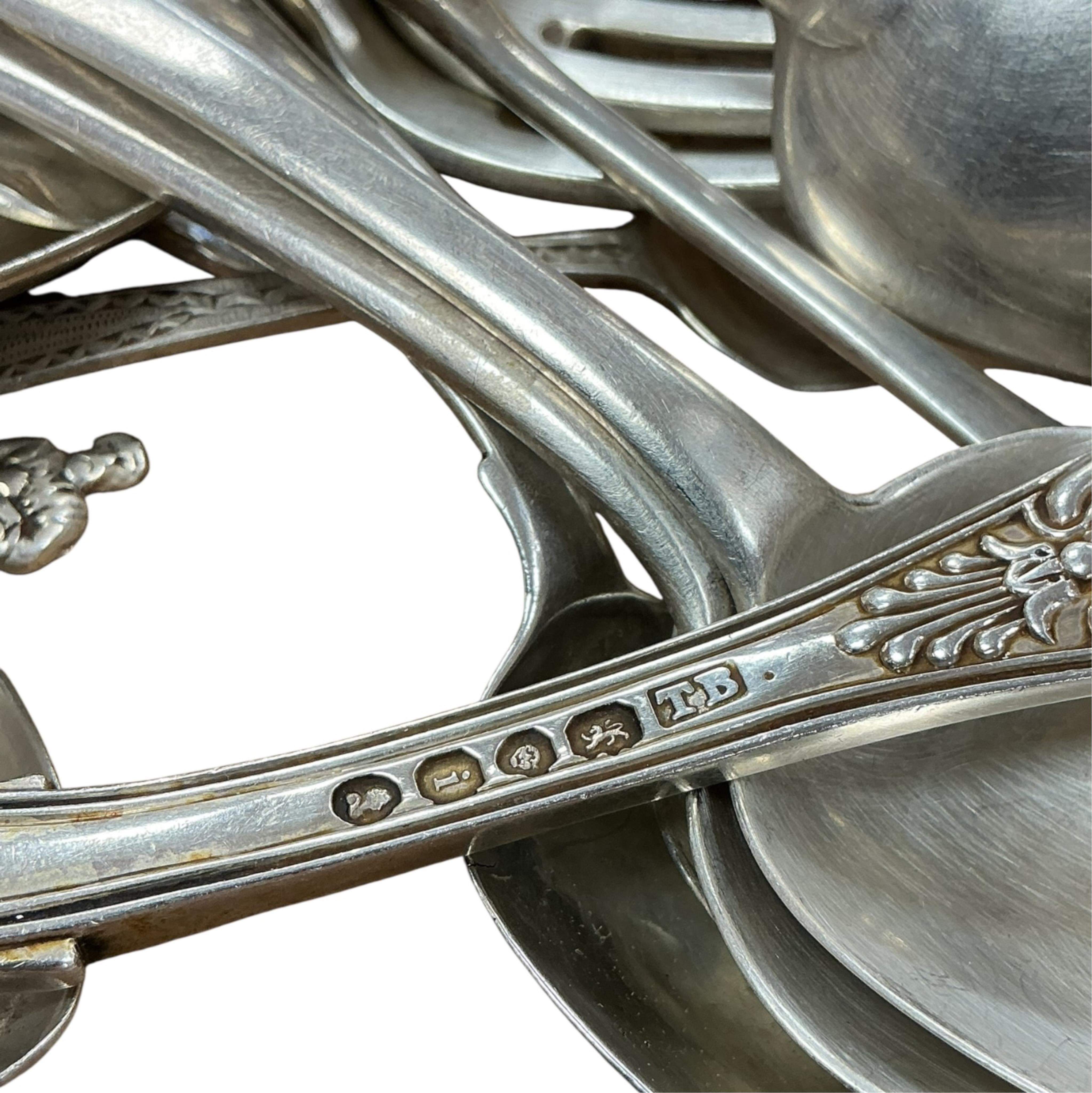 Lot 1872 , A matched set of six George IV silver King's pattern dessert forks, Charles Boyton, London, 1827(5) and Thomas Wilkes Barker, London, 1824(1), together with a group of seventeen other assorted items of mainly 19th centur