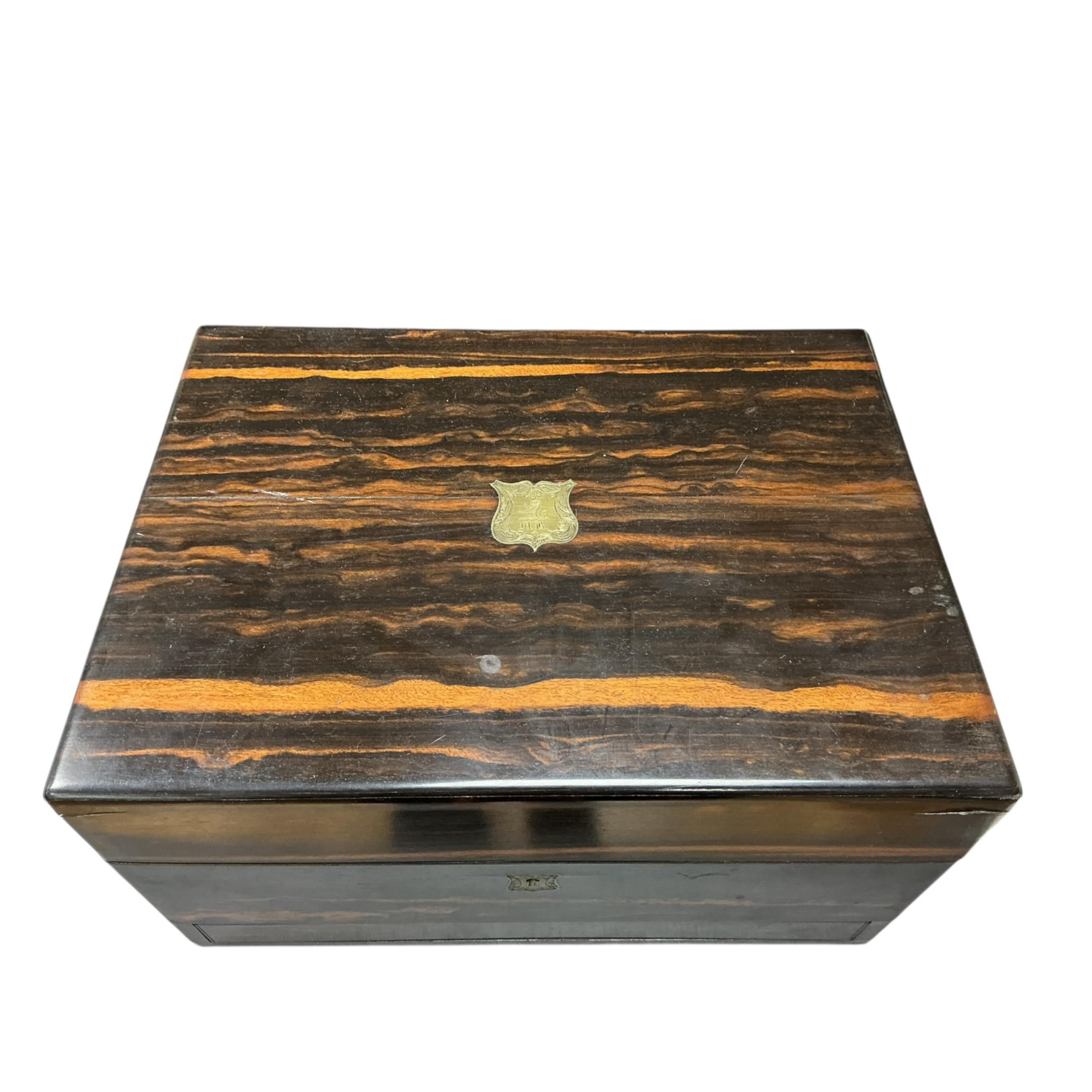Lot 3557 , A Victorian coromandel toilet box with plate mounted tray interior width 30cm