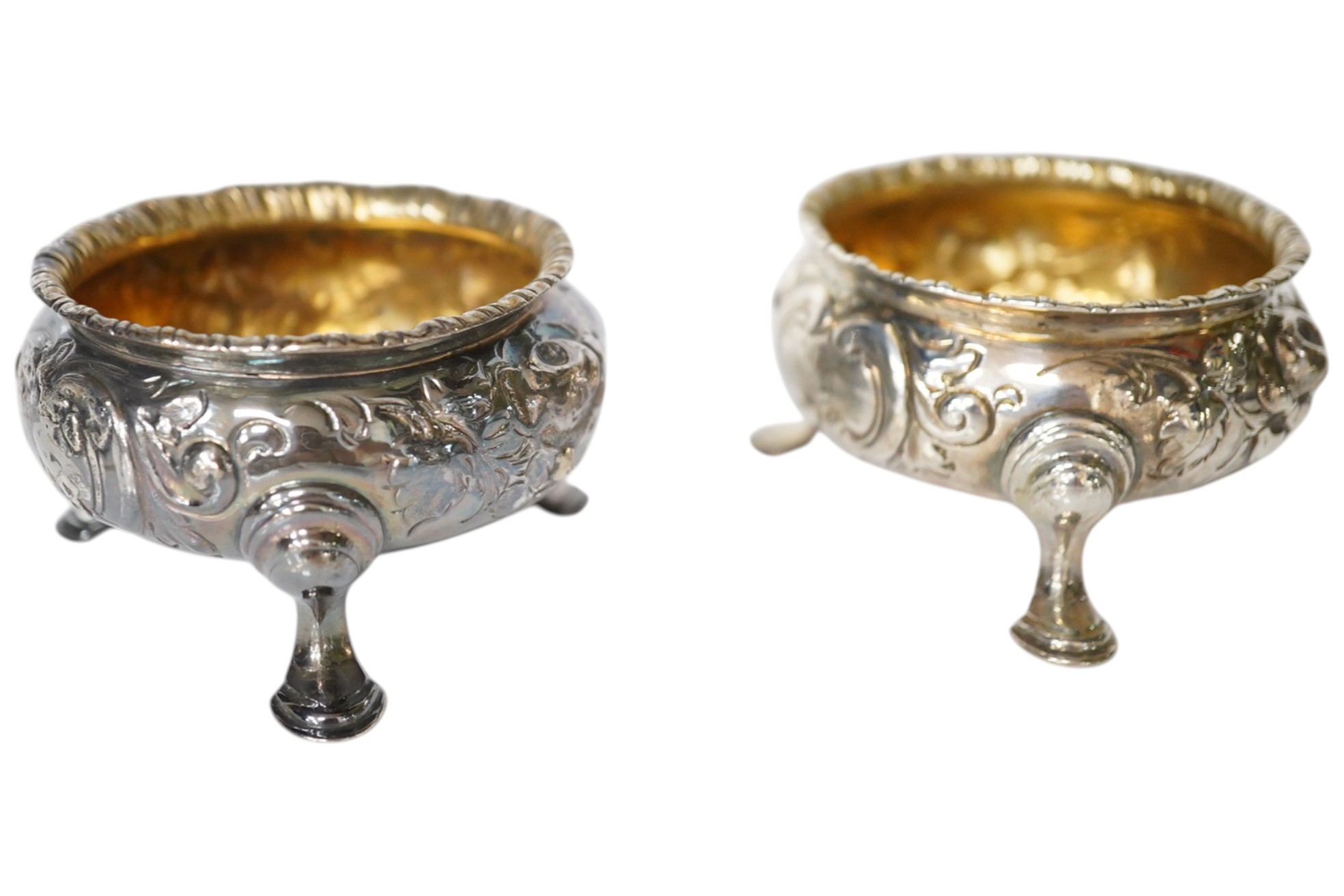 Lot 3869 , A set of four Victorian embossed silver bun salts, by Reily & Storer, London, 1850, diameter 61mm.