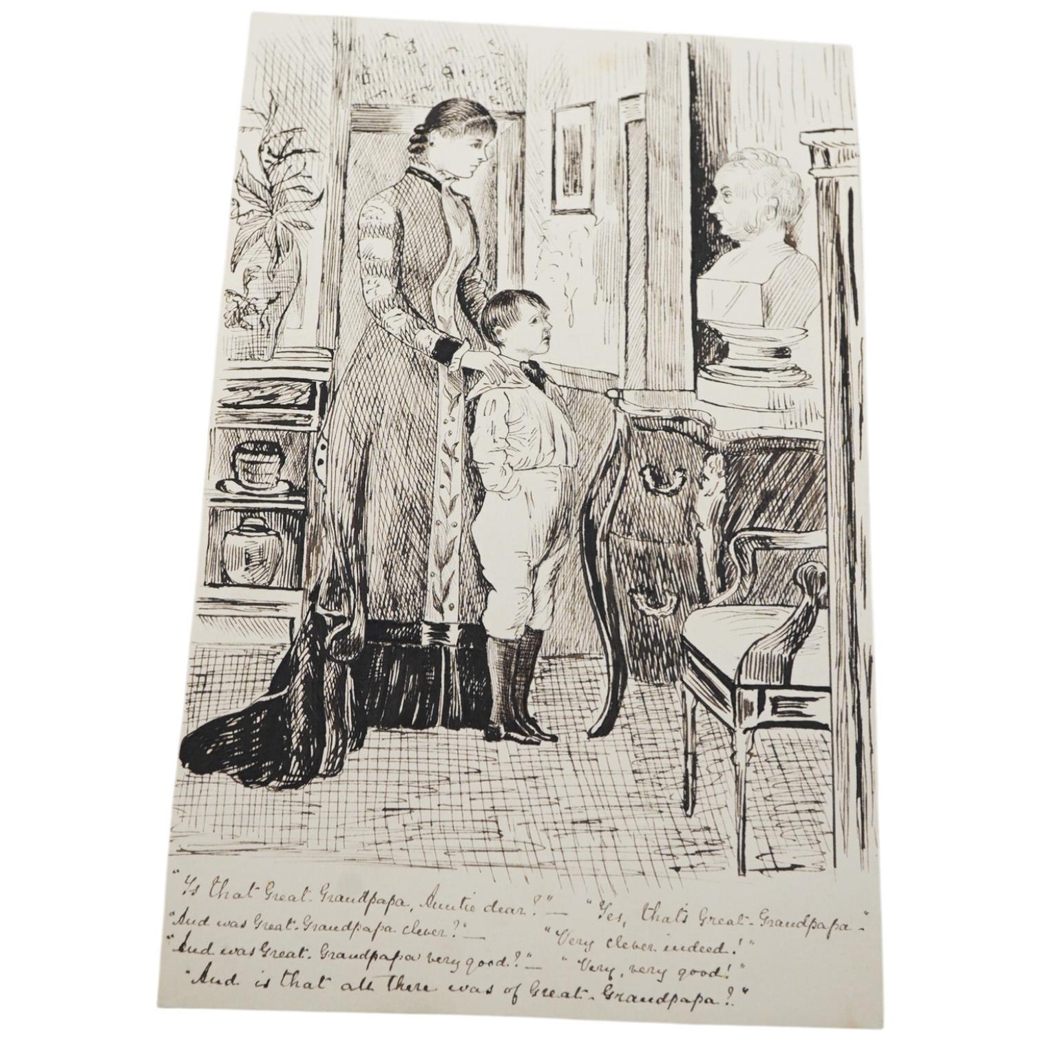 A Victorian album of ink sketches to include punch style cartoons, ‘ The Jackdaw of Rheims’, ‘Intuition’ and ‘Ghost’, album 31 x 27cm
