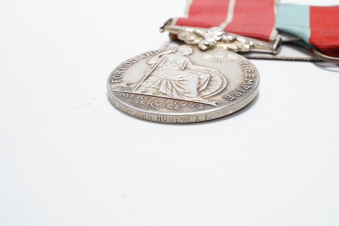 A WWII BEM medal group awarded to 525439 Sgt. John Hume R.A.F., comprising of six medals (BEM engraved); a GVI British Empire Medal,