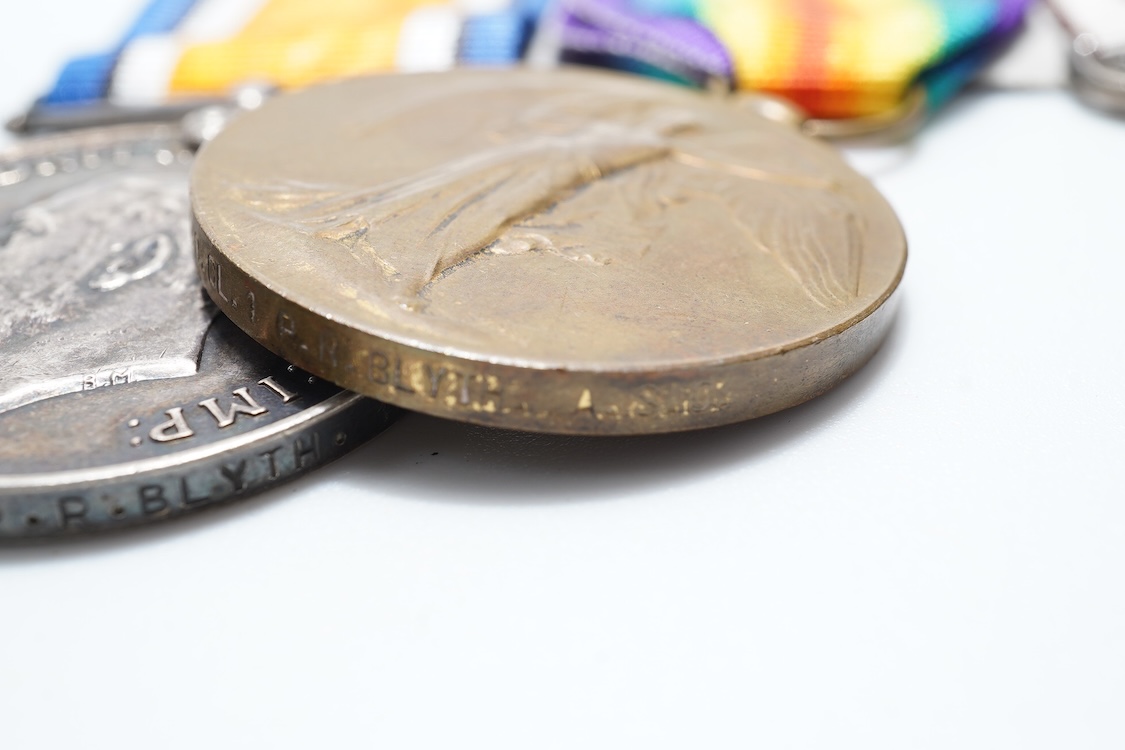 Lot 1328 , A George V military medal group awarded to S-20061 T.S.S. MJR. P.R. Blyth. R.A.S.C., comprising four medals