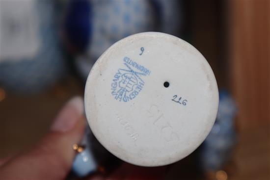 The cockerel has minor chips to its feet, turkey has a large chip to one of its tail feathers and also a hairline crack to the back. The vase has a large hairline crack running the length of the body