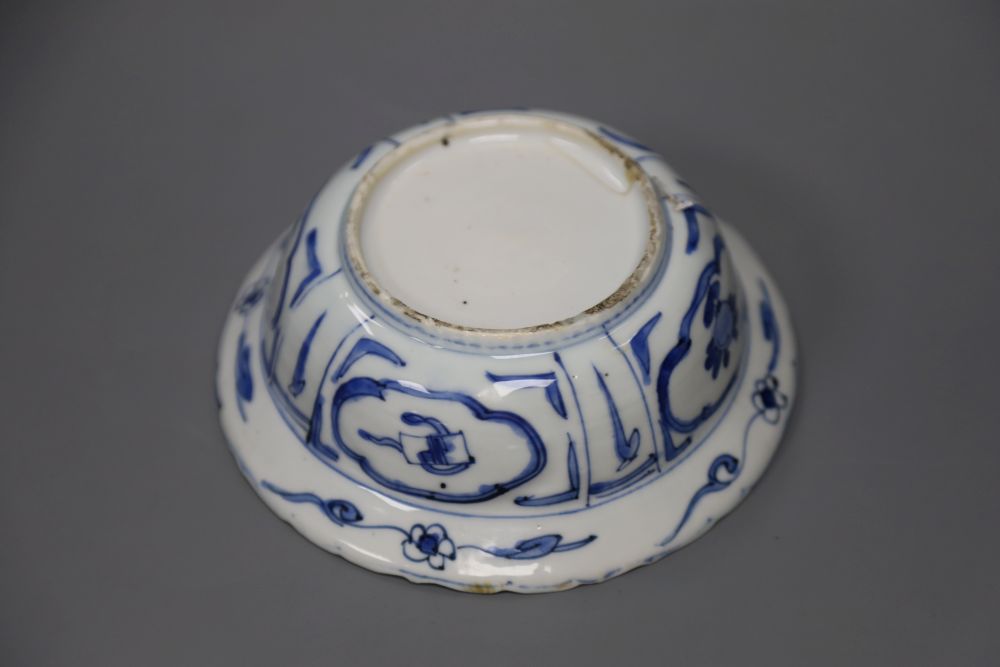 A Chinese Kraak blue and white bowl, c.1640, diameter 15cm