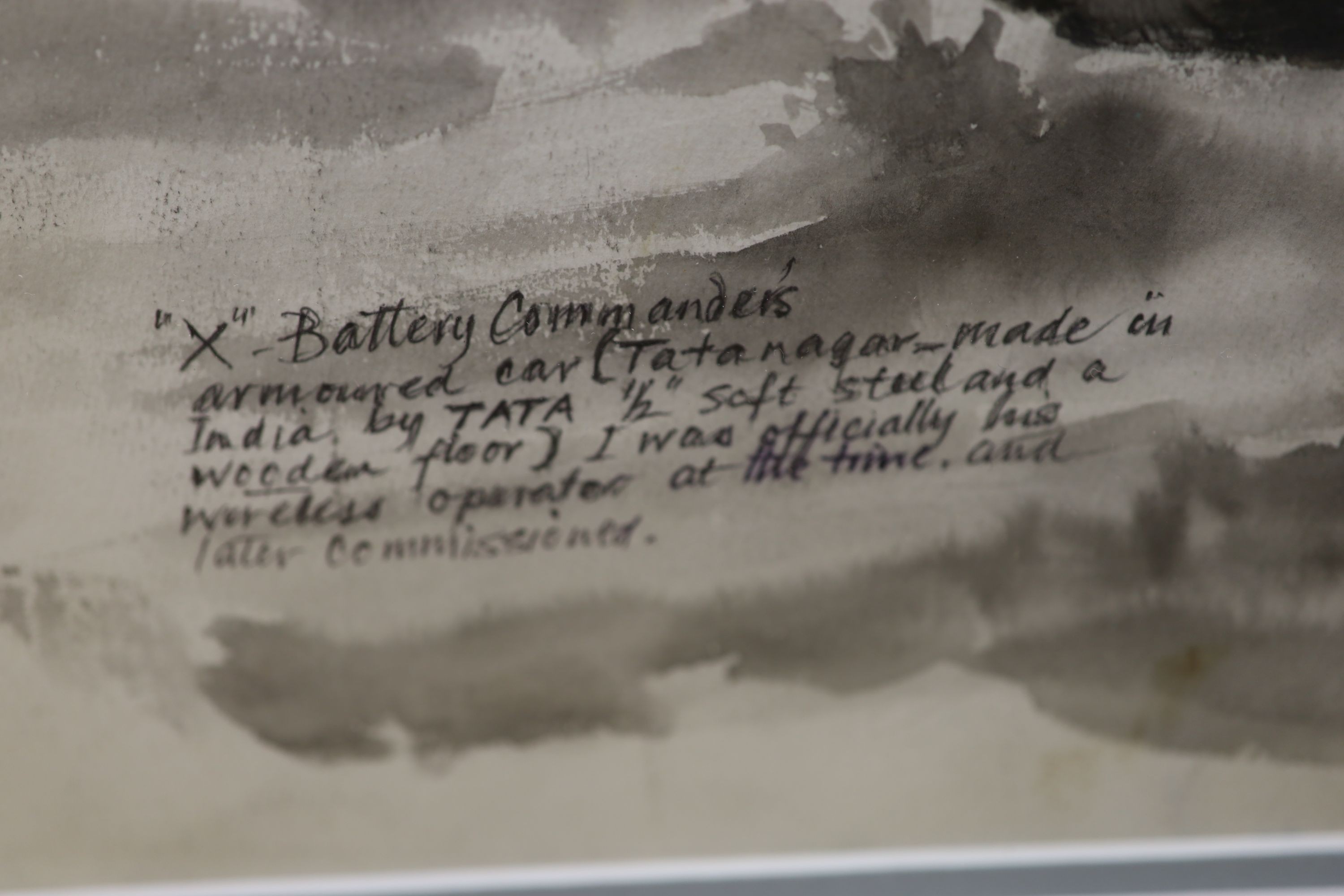 Cyril Mount (1920-2013), ink and wash, ‘X Battery Commanders, armoured car..’, signed and dated ‘42, 26 x 38cm.