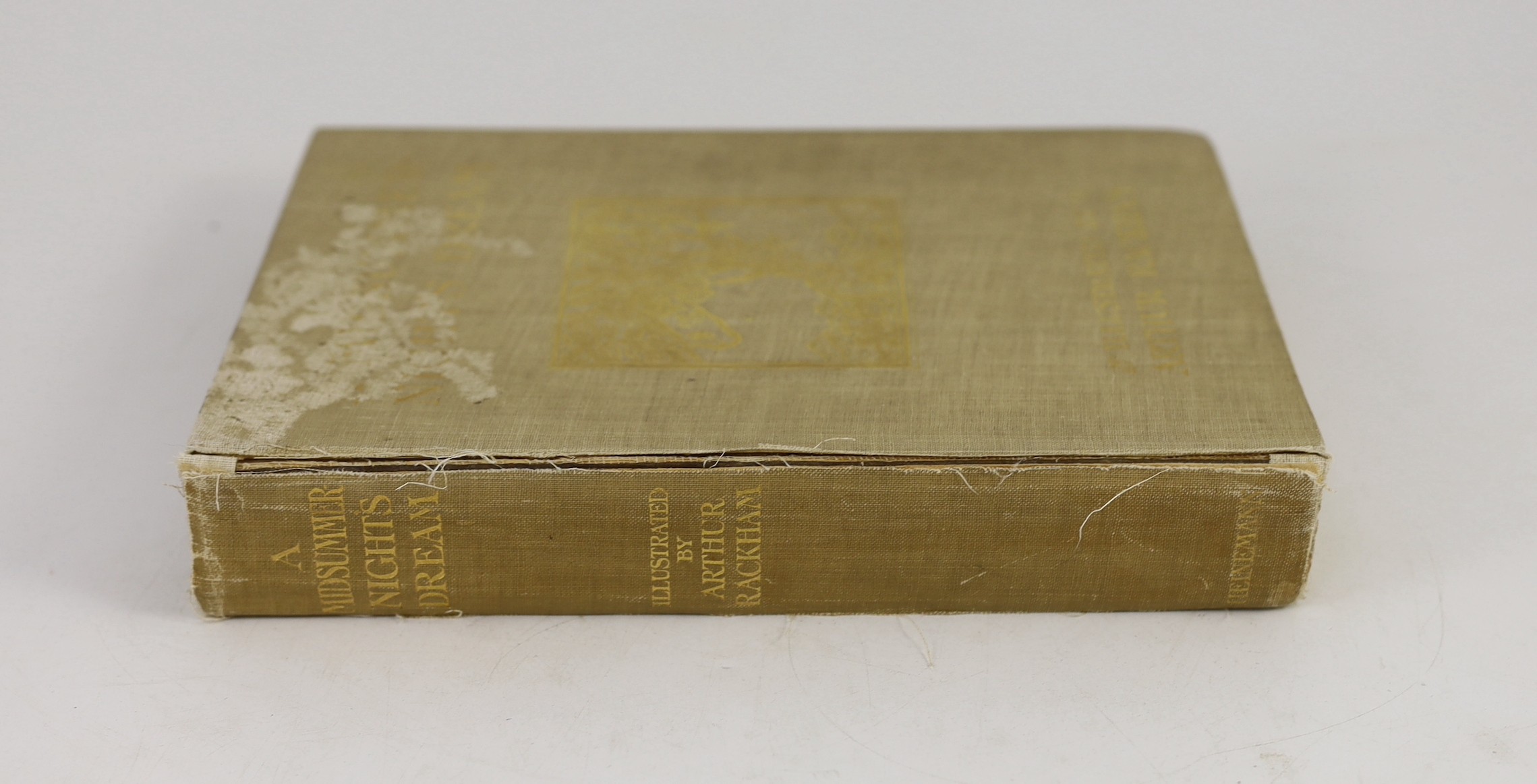 ° Shakespeare, William - A Midsummer-Night's Dream. pictorial title, 40 coloured and mounted plates (with captioned guards), text illus. & decorations (by Arthur Rackham). 1st trade edition. original gilt-pictorial cloth, roy.8vo. 1908