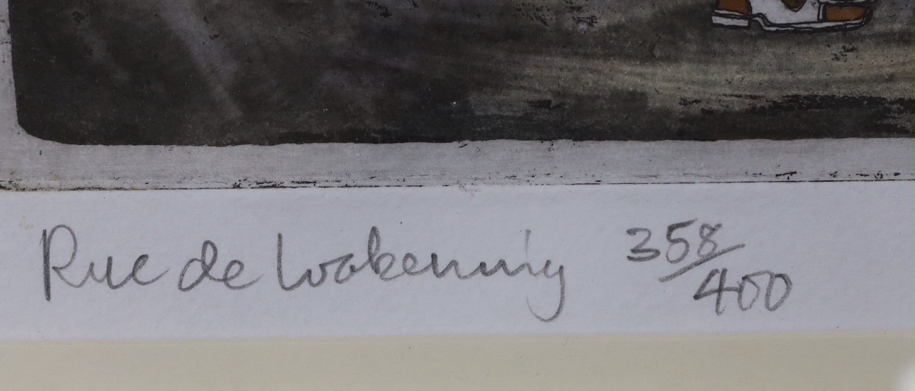 Graham Clarke (b.1941), etching and aquatint, 'Rue de Wakening', signed in pencil, 358/400, 58 x 72cm