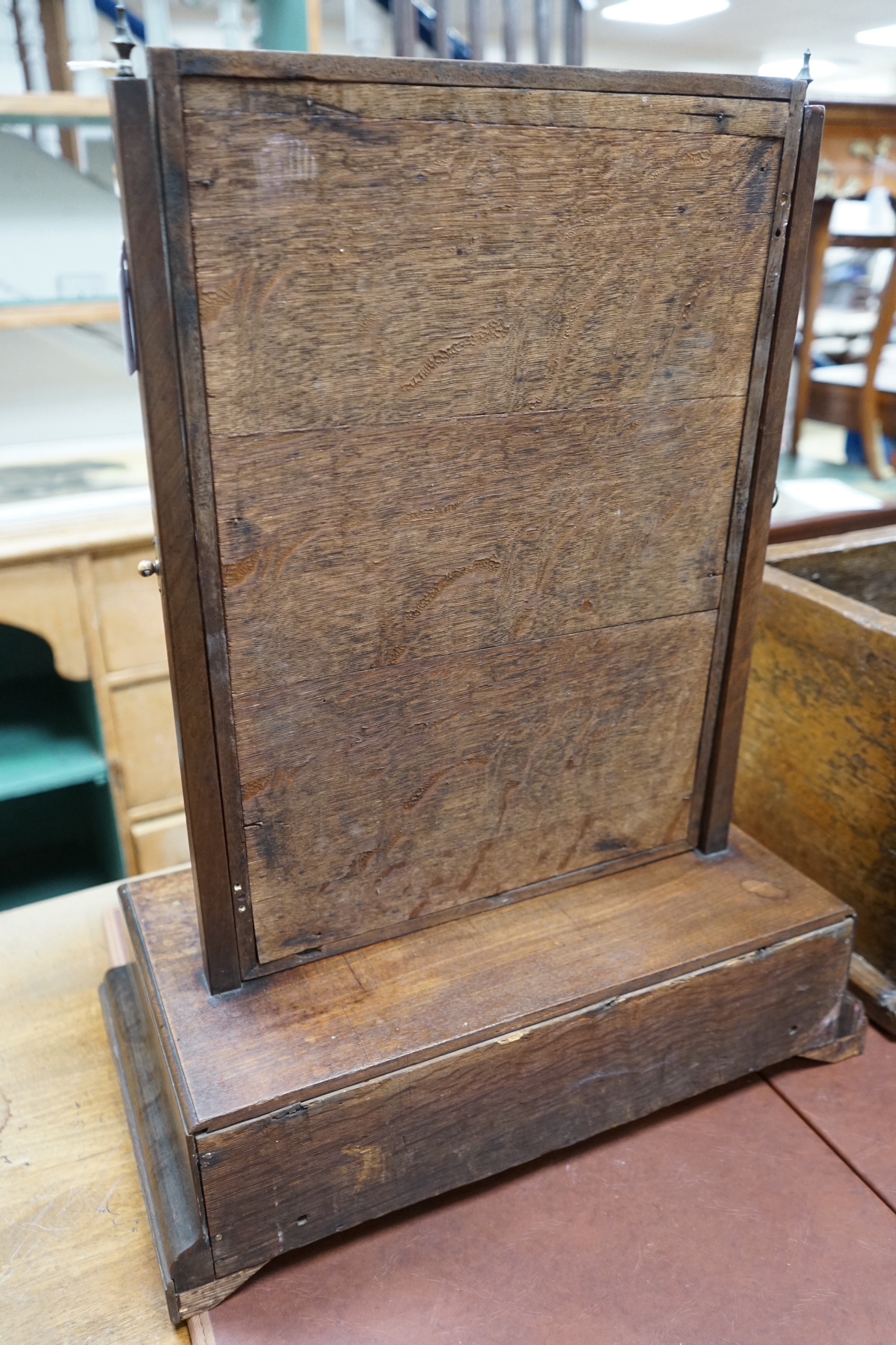 An 18th century mahogany box based toilet mirror, with bevelled plate and three base drawers, on bracket feet, width 49cm, depth 27cm, height 62cm