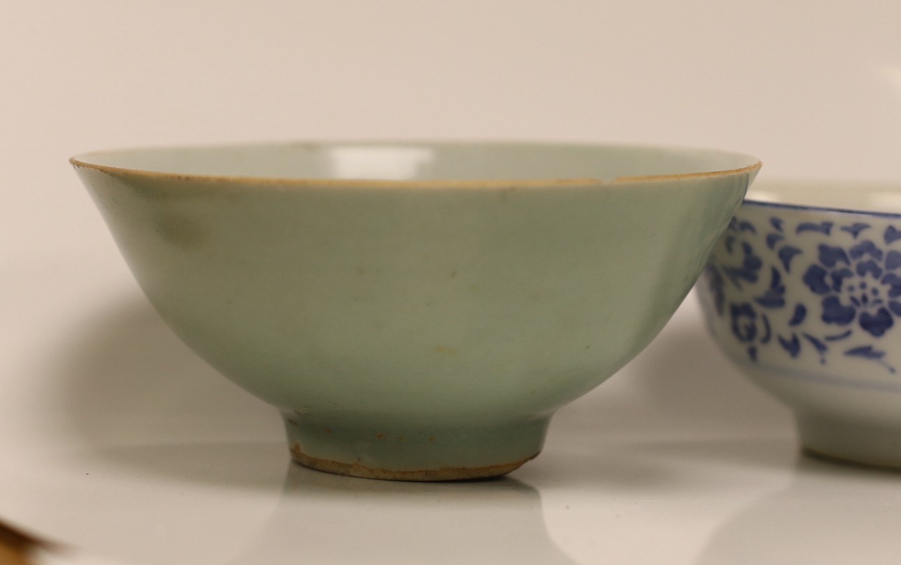 Four Oriental bowls , two hardstone pigs and a Thai carving