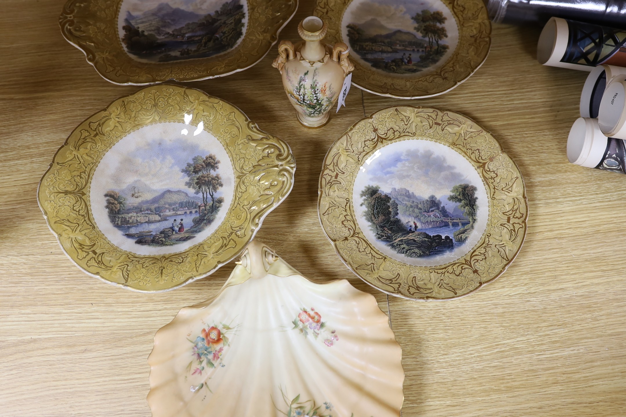 A Worcester blush ivory miniature vase, 16cm, and an F & R Pratt multicoloured four piece dessert set
